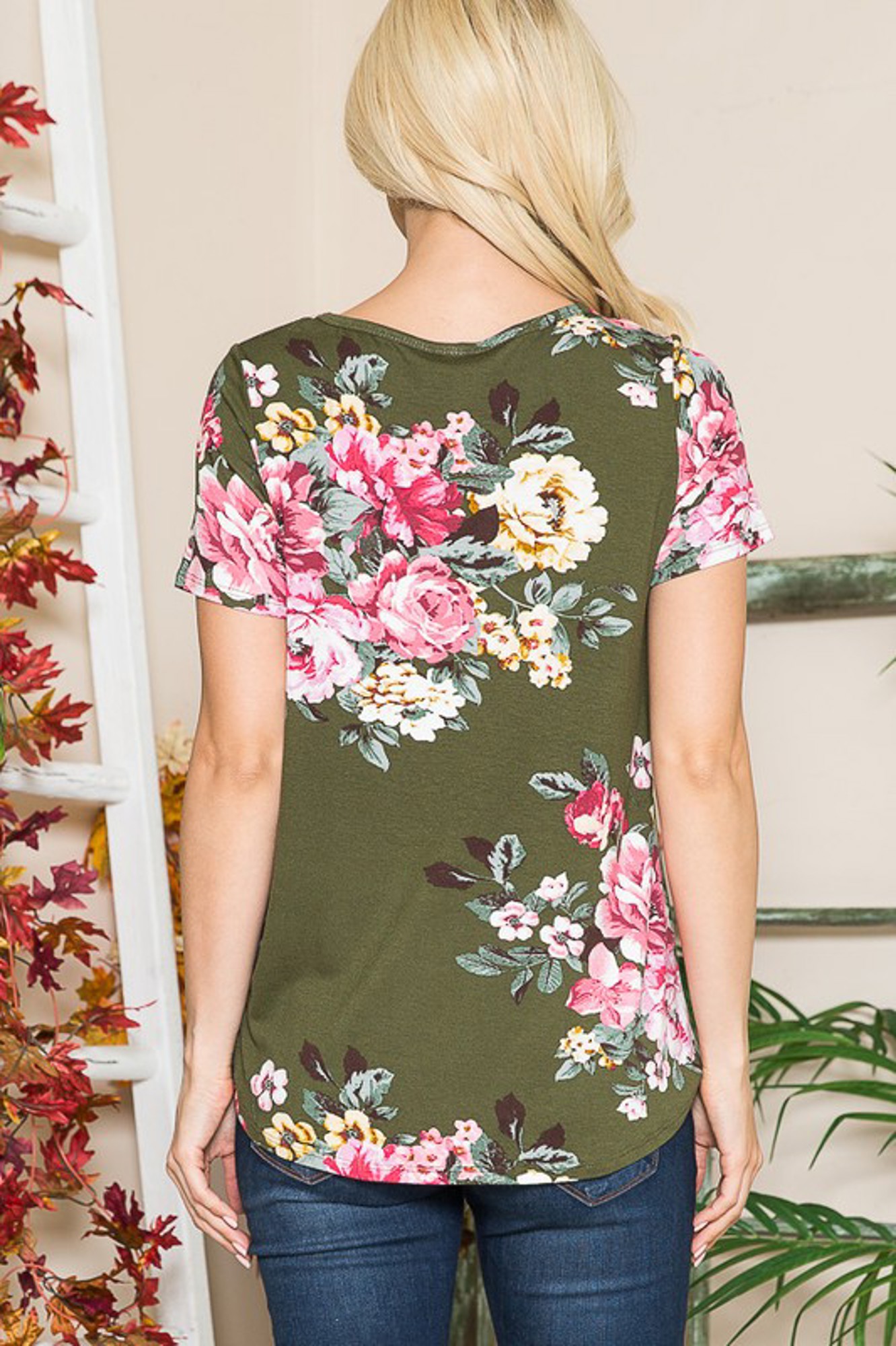 CRISS CROSS CHEST FLORAL SHORT SLEEVE TOP