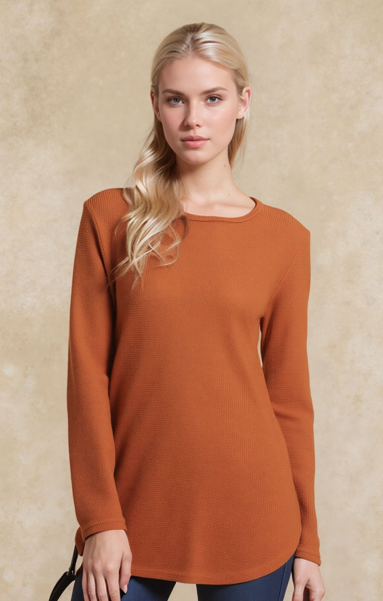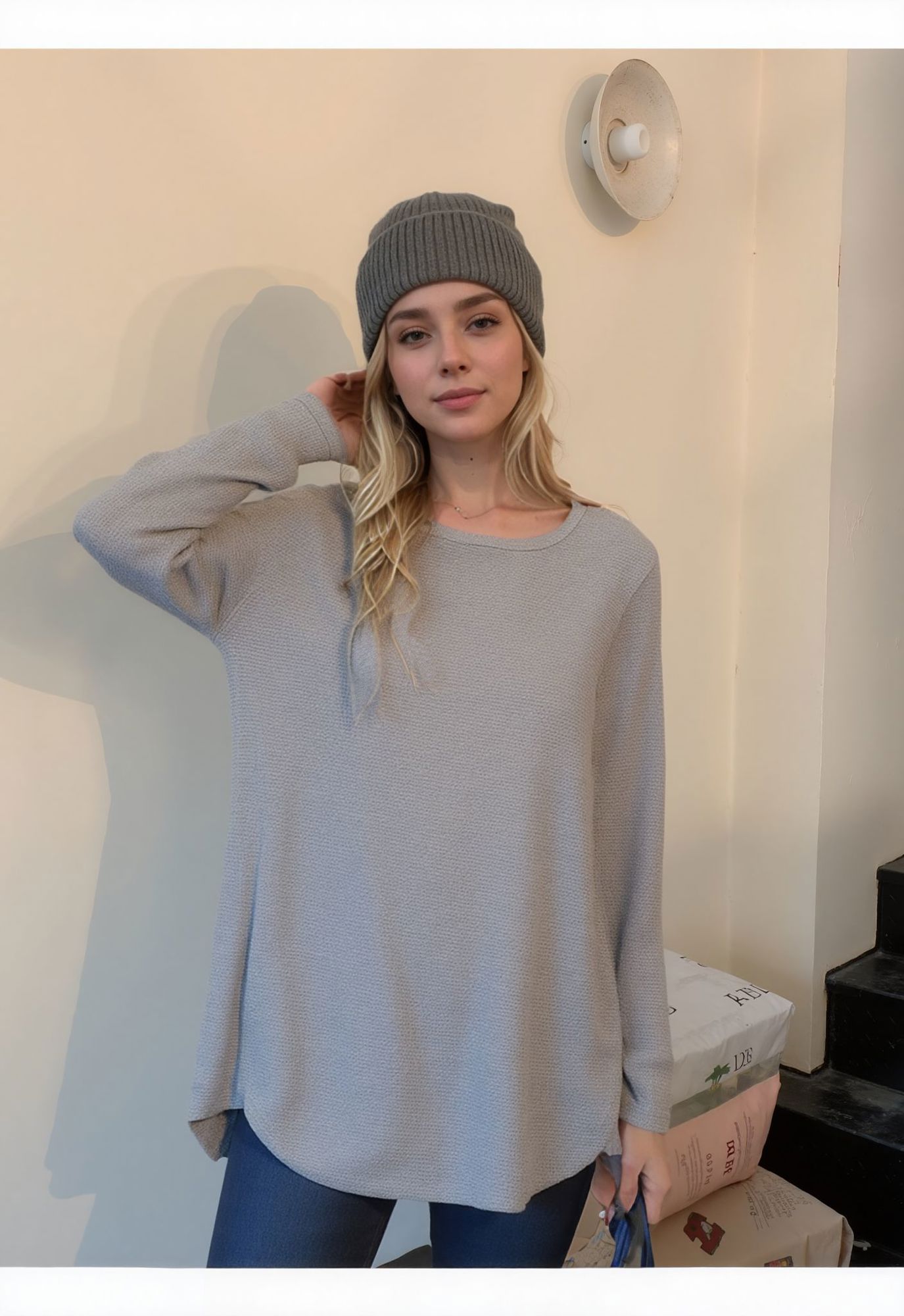 Casual long-sleeve knit top with a simple, clean silhouette.