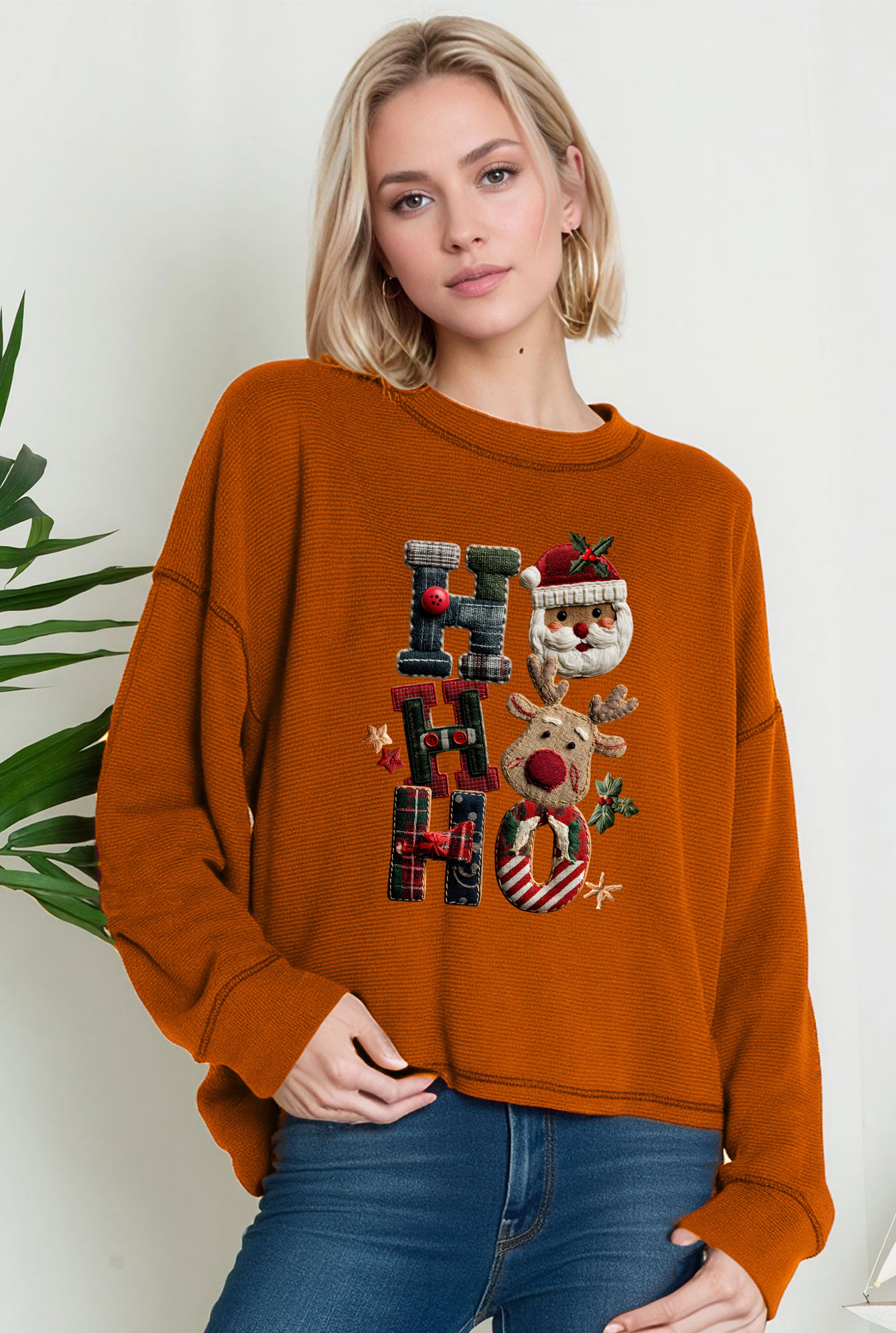 Christmas Theme cute HOHOHO Embroidery look-like Print