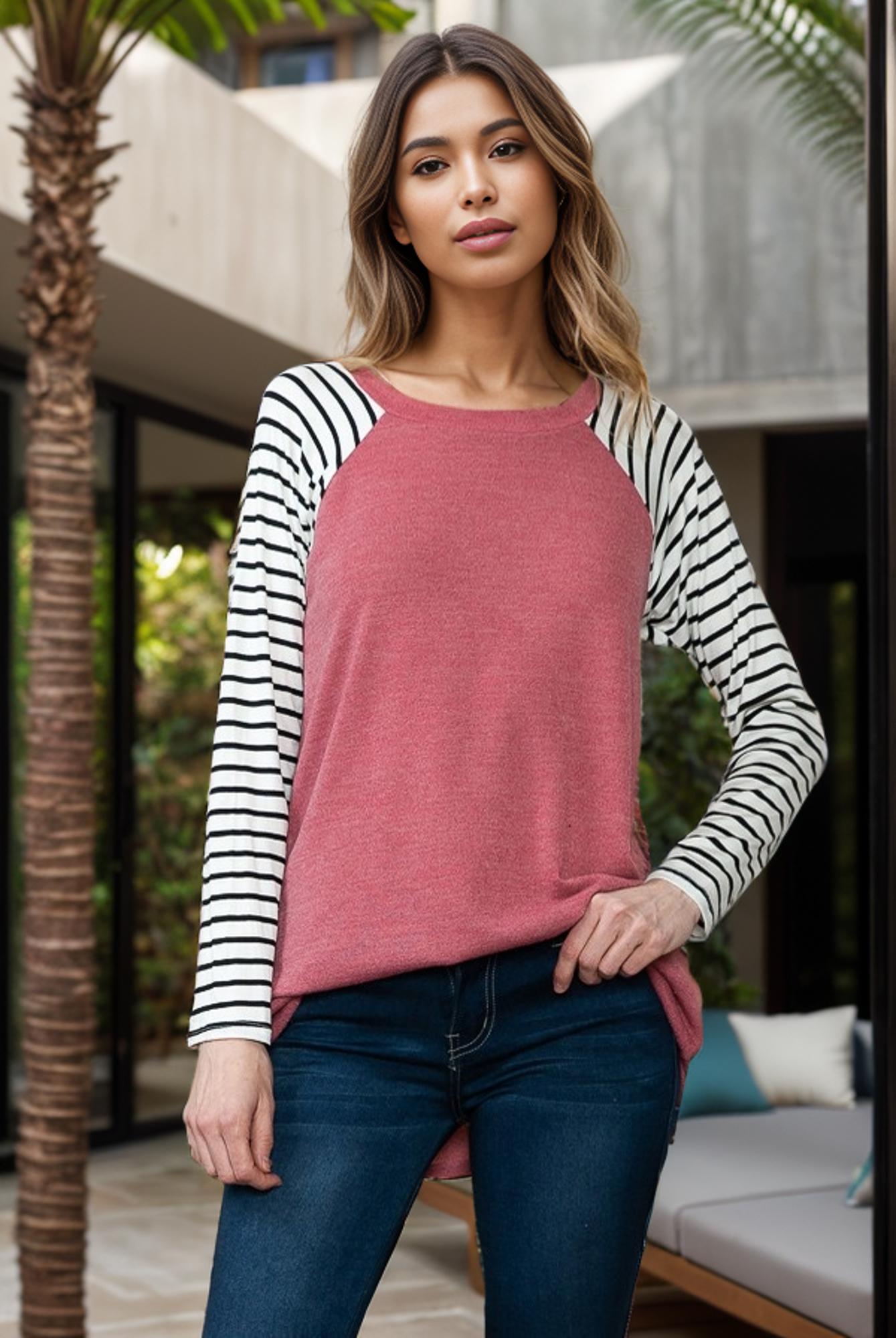 Raglan Solid top with stripe long sleeve