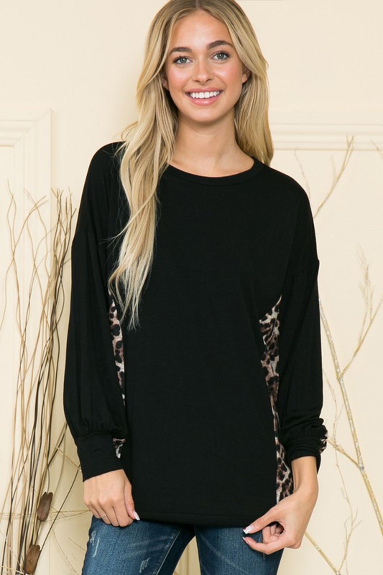 SOLID TUNIC TOP WITH ANIMAL SIDE CONTRAST