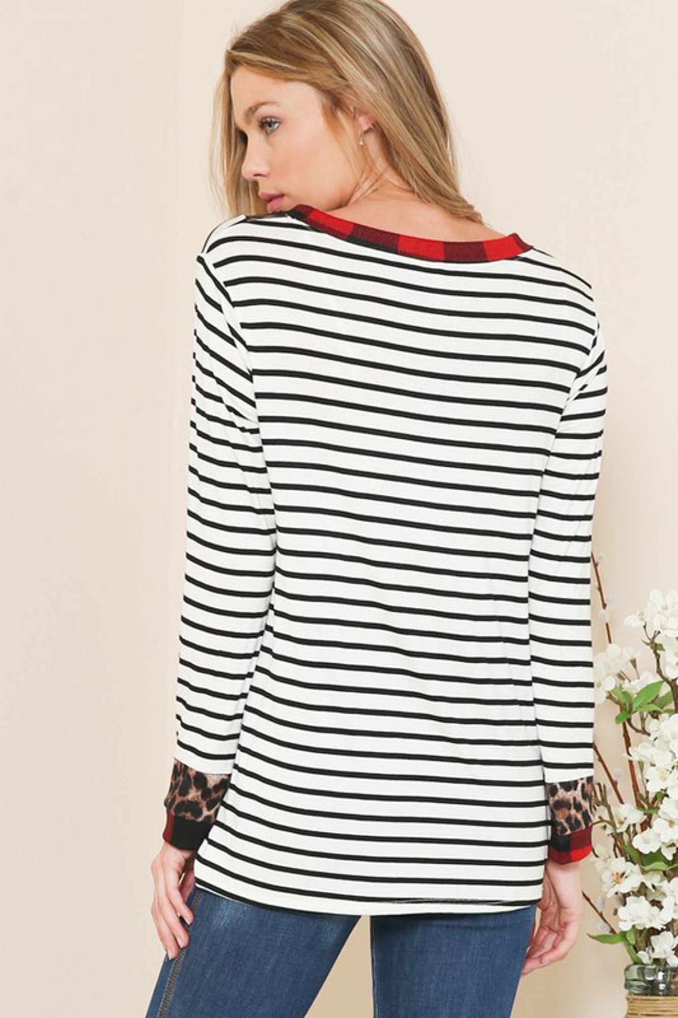 STRIPE TUNIC WITH LEOPARD AND PLAID CONTRAST