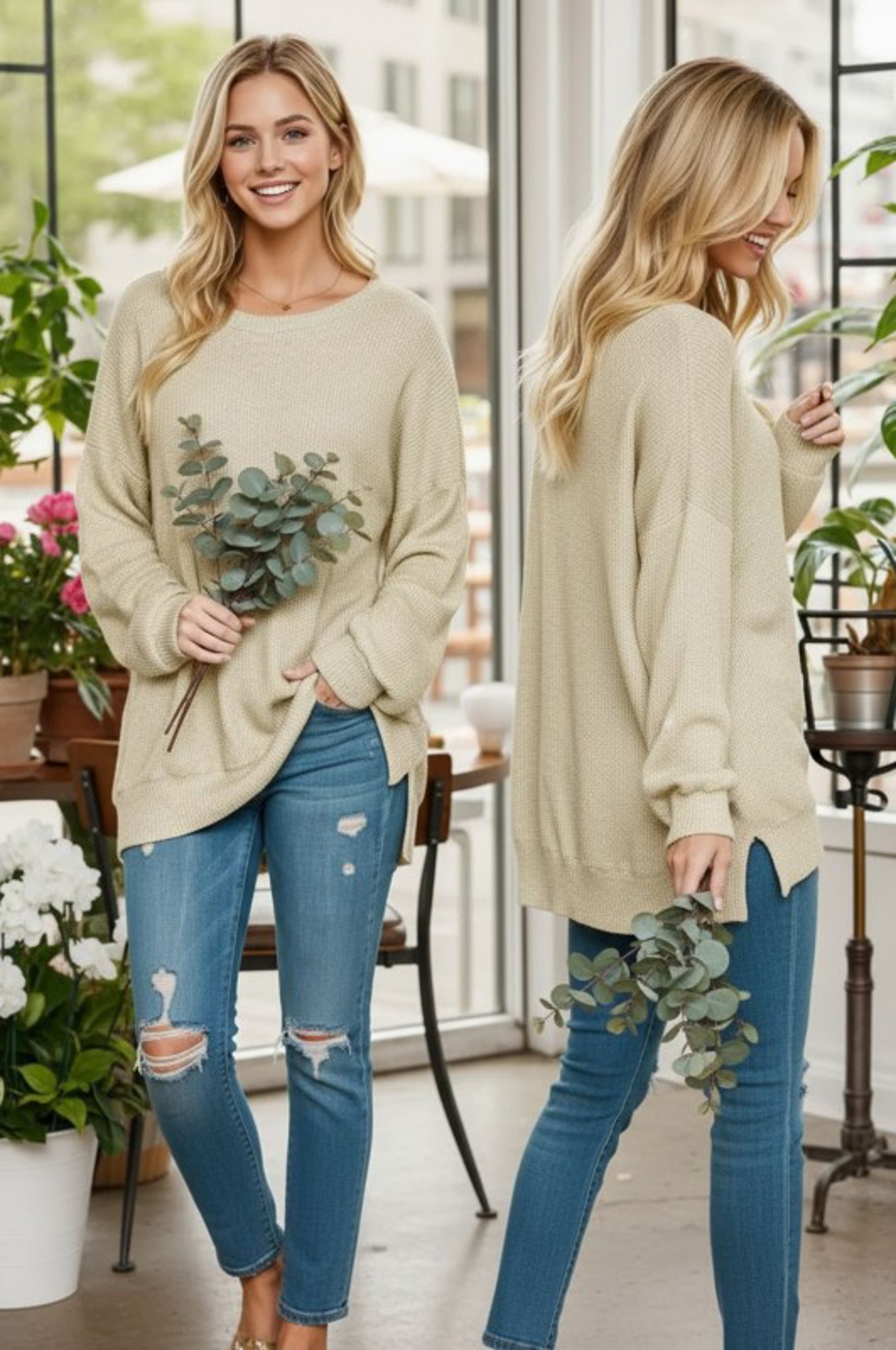Super Soft Waffle Oversized Sweatshirt with Side Slit