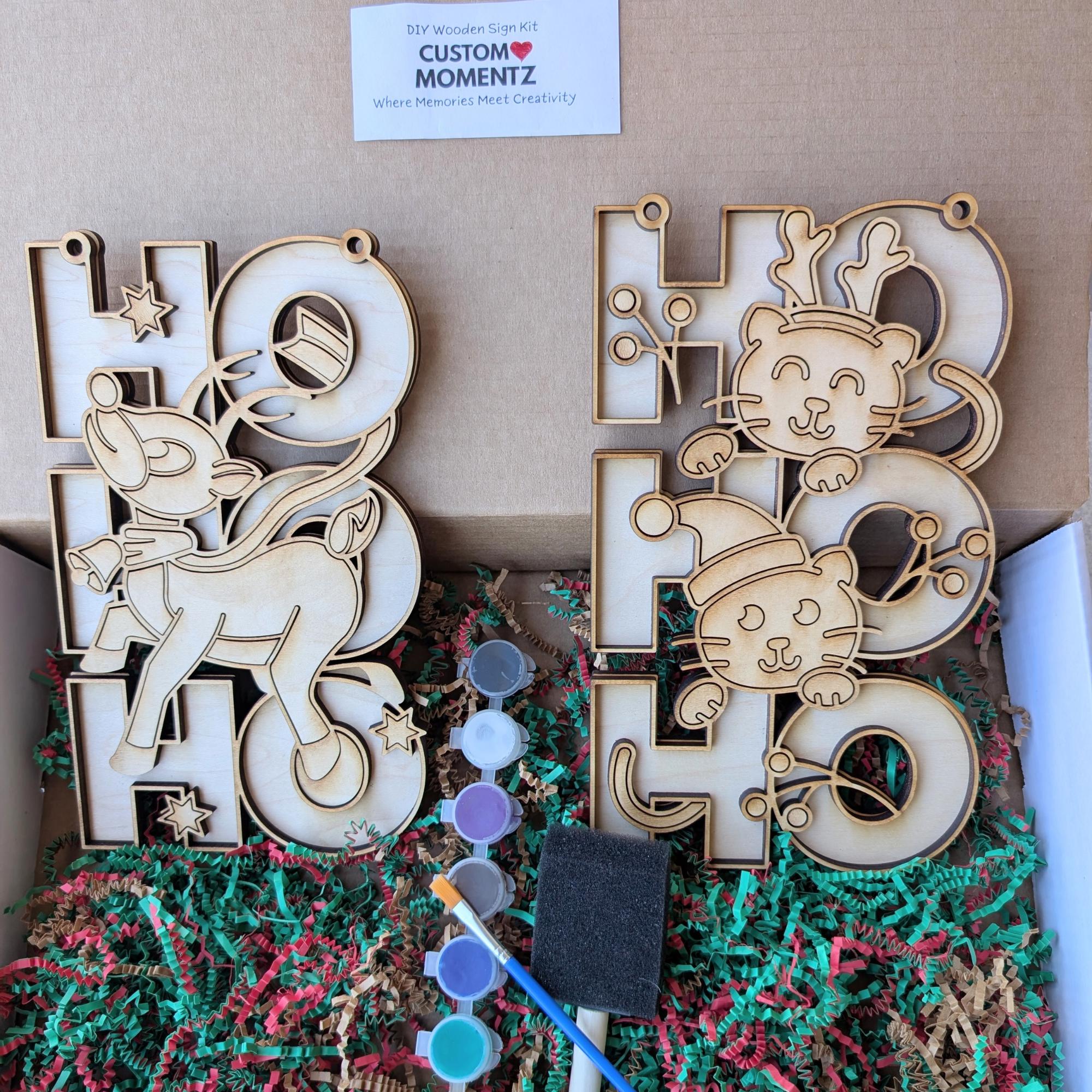DIY Christmas Hohoho Reindeer and Cat Set Wooden Painting Kit