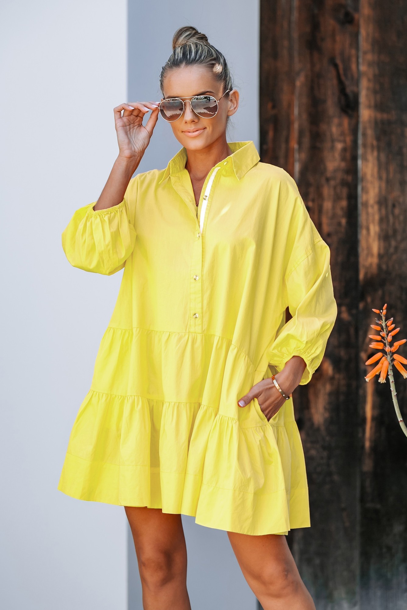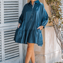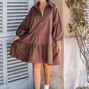 Puff Sleeves Oversized Mini Dress with Pockets