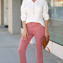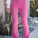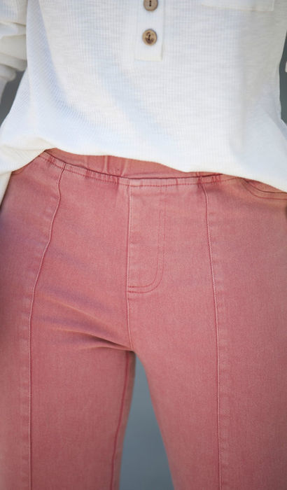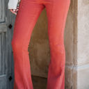 Crafted with a soft, garment-dyed fabric and a flattering flare silhouette, these burnt sienna pants deliver laid-back charm with a hint of retro edge. The elastic waistband offers pull-on ease, making them perfect for everyday wear - from lounging to casual outings.