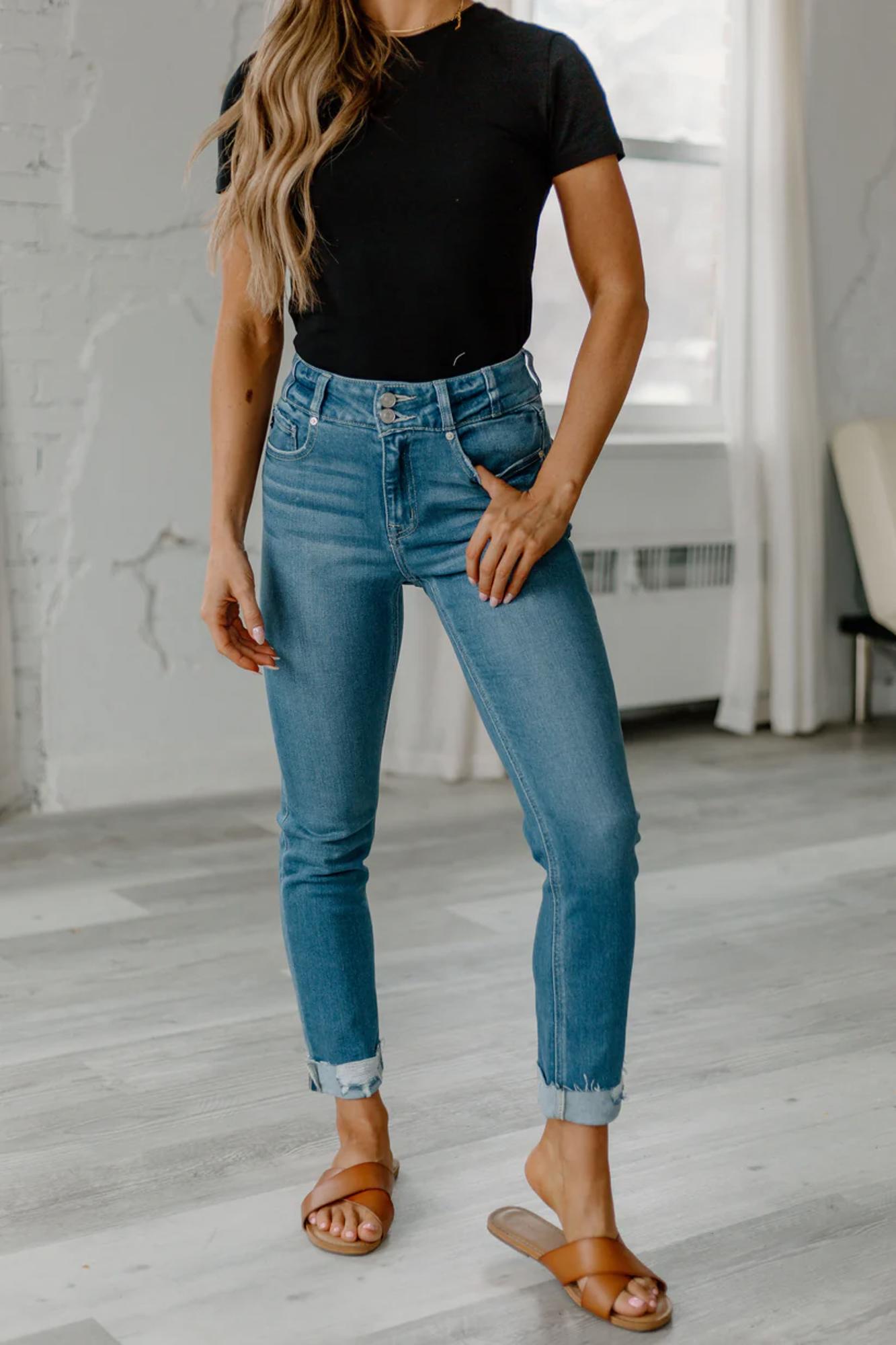 Kancan High-Waist Cuffed Denim