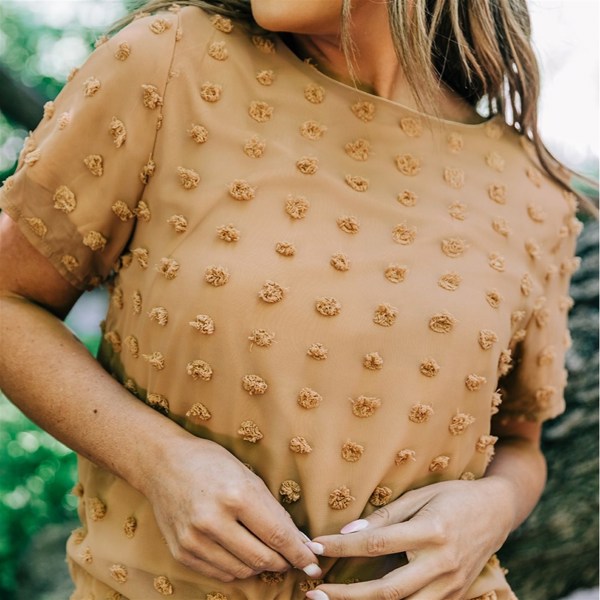 Love the shirt! The material is thin and lightweight so it does show some of my imperfections underneath, but overall looks good with skinny jeans and leggings.