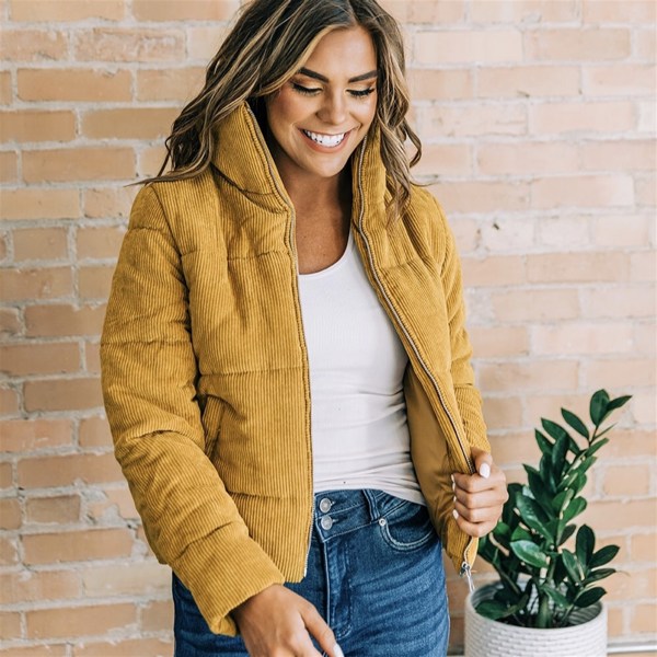I was pleasantly surprised with the quality of this jacket! It runs true to size, the corduroy is soft, the jacket nice and puffy. I wasn't sure what the lining would be like, but it is a soft smooth polyester so other shirts don't "stick" to it when placing your arms in the jacket. Lovely jacket!!
