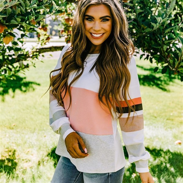 The picture definitely looks like the sleeves have some orange/taupe colors, but it's all shades of pink with some gray and black. It's oversized which will be fine and comfortable, but just not the colors I was expecting.