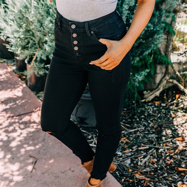 We have changed the description on the black skinny jeans to reflect that fact that you should size down two sizes. Sorry these didn't work out!