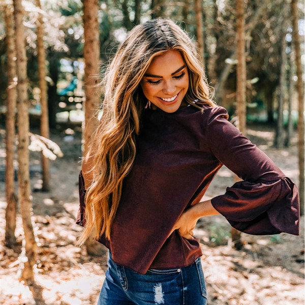 Very cute top. I typically wear medium or large. I ordered medium & it is just right. More of a fitted look but not tight at all.
