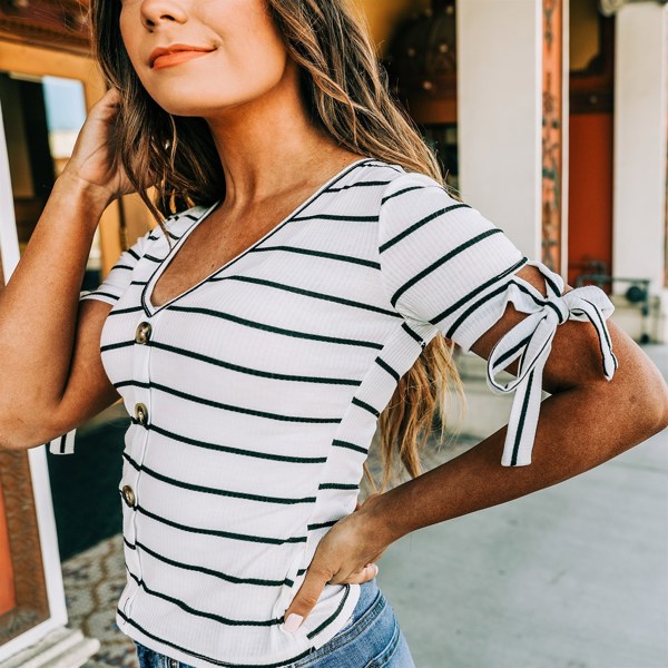 It’s definitely more of a relaxed fit, I was expecting just a plain black and white striped shirt but there’s this tarnish shadow to the stripes and some smaller black lines in the white lines.. kinda reminds me of wood grain. It’s cute not what I was expecting though