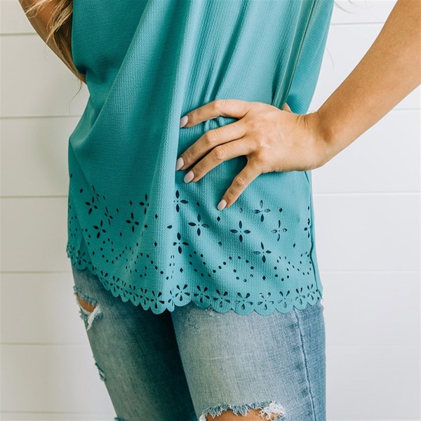 Shirt is very comfortable and cute. Definitely need a tank top under. It does come a bit lower on the chest than pictured. Super cute!