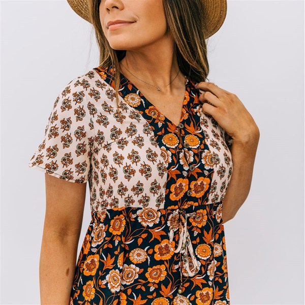 Beautiful dress! It fit perfectly, I ordered a M and weigh around 150 lbs at 5'9 tall. It hit just below the knee and has a pretty neckline that doesn't gape. I'm very pleased with this!