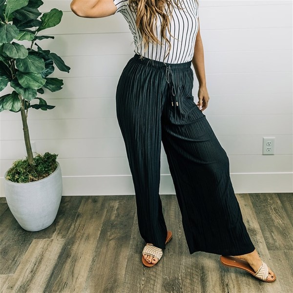 These are super cute and flowy pants to dress up or down, my only problem is that I'm 5'8 and tried to wear them as a higher waist pants and they came up a little short. Also with them being one size they were a lil snug. But they are super cute!