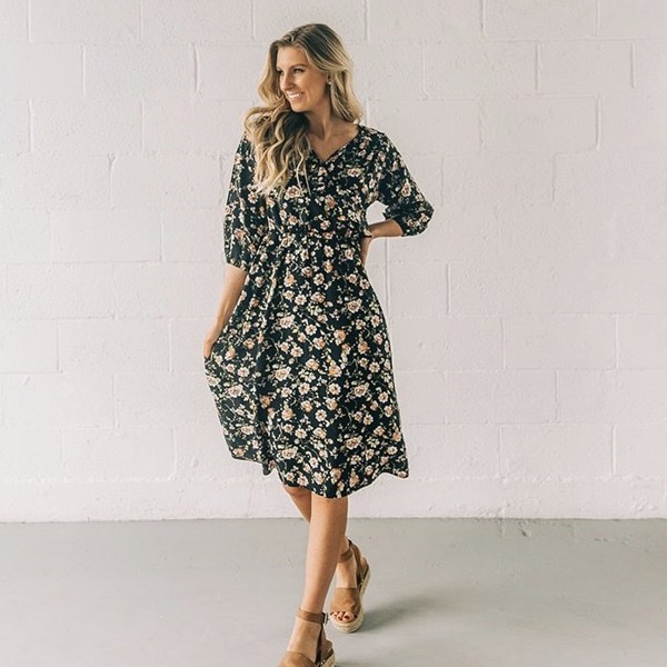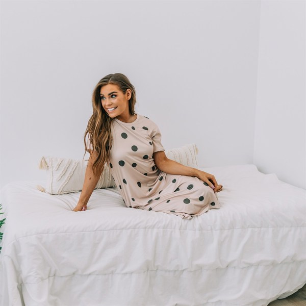 The dress is nice material and really cute. The only small downside is the arms are a little tight.