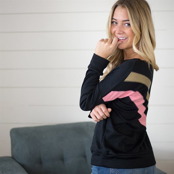 I loved the fit except for the striped material. It isn’t very stretchy and is tight through the arms.