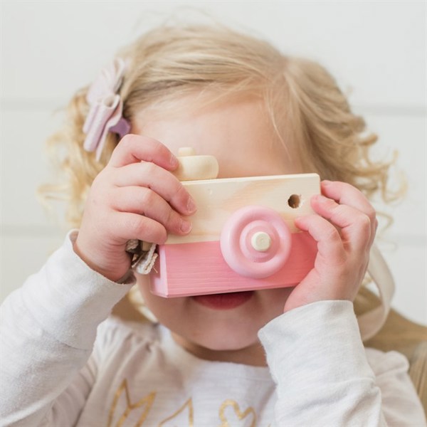 The strap is a little smaller than I thought it would it won't go over my head but it goes over my daughters and that's what counts, asides that it is very cute and she can't get enough of taking pictures