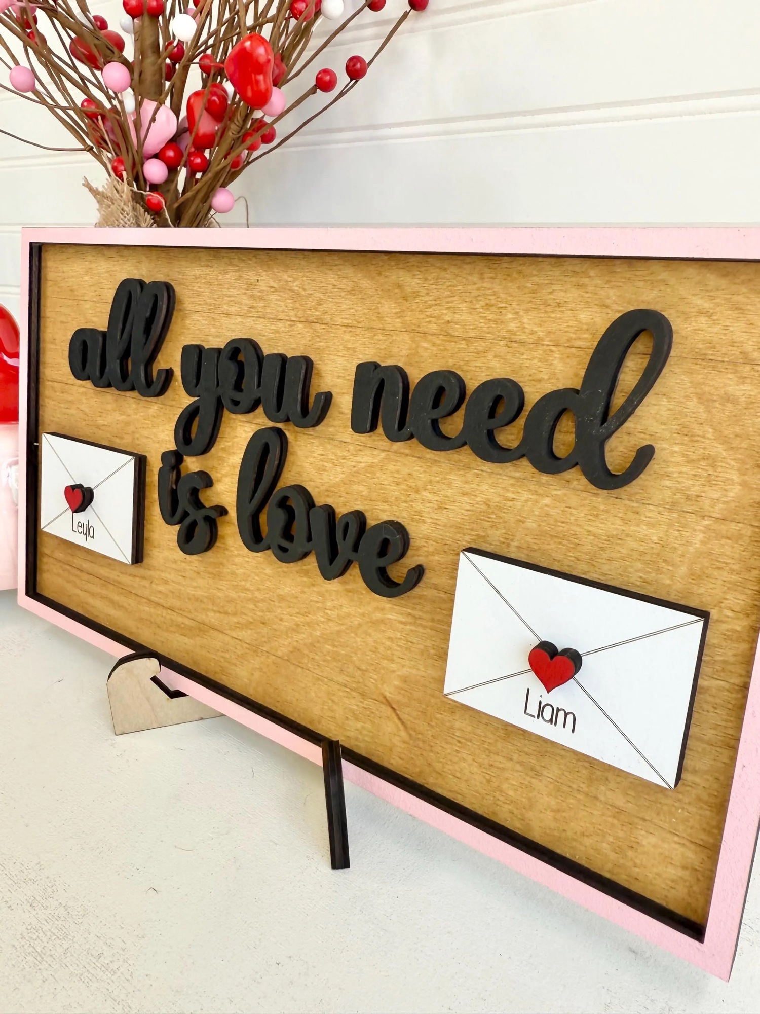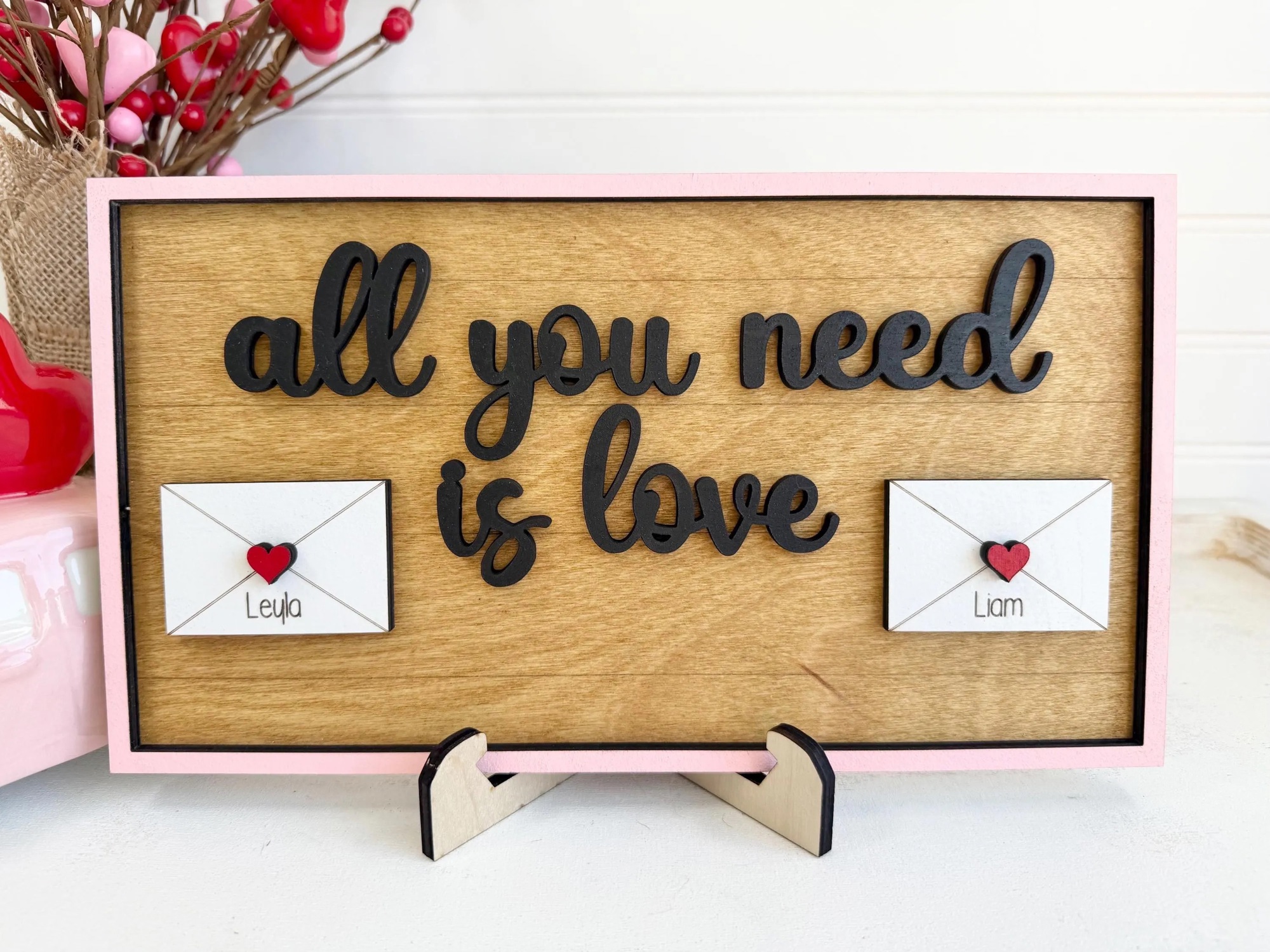 All You Need Is Love, Family Valentines Name Sign, Personalized Valentines Family Sign