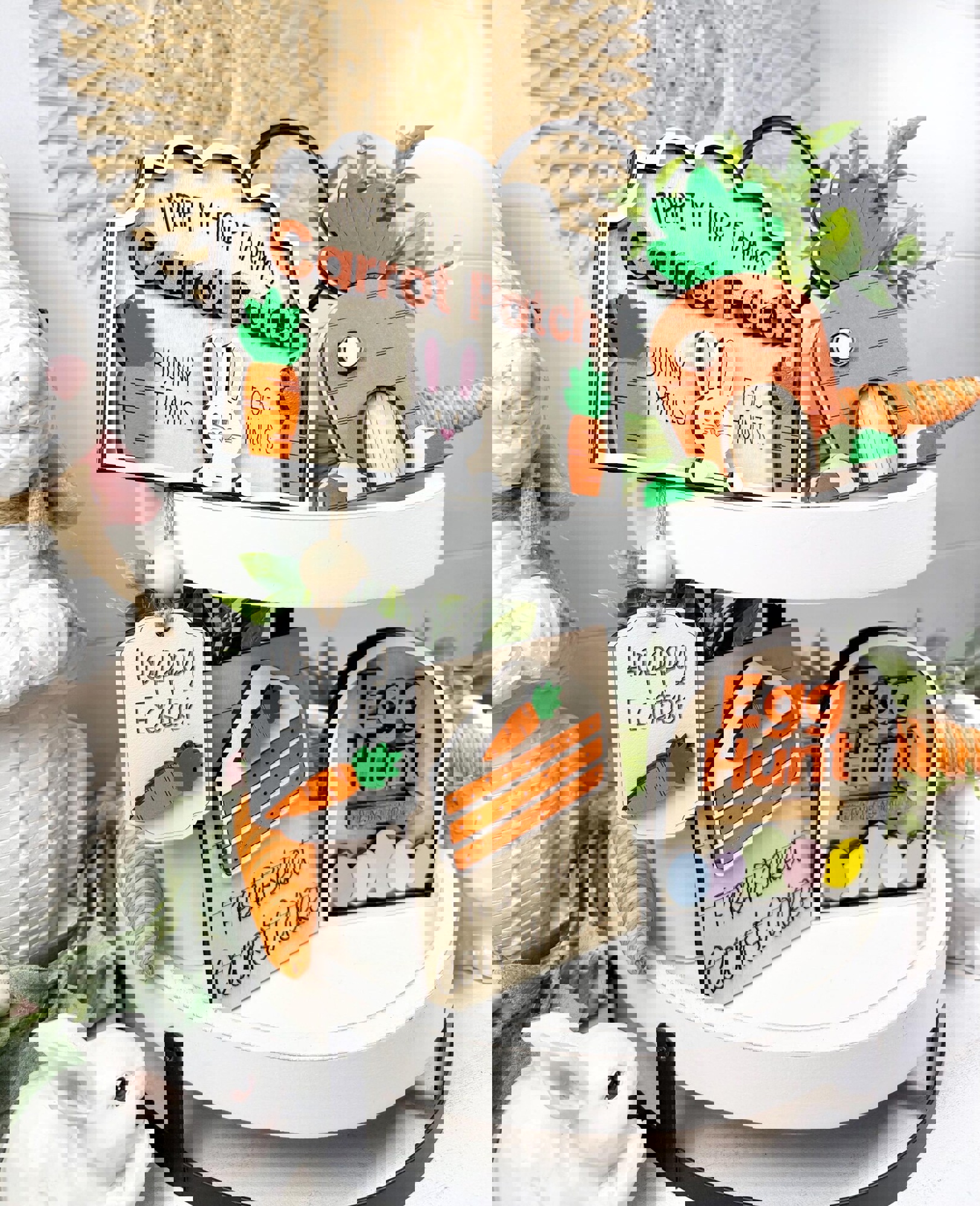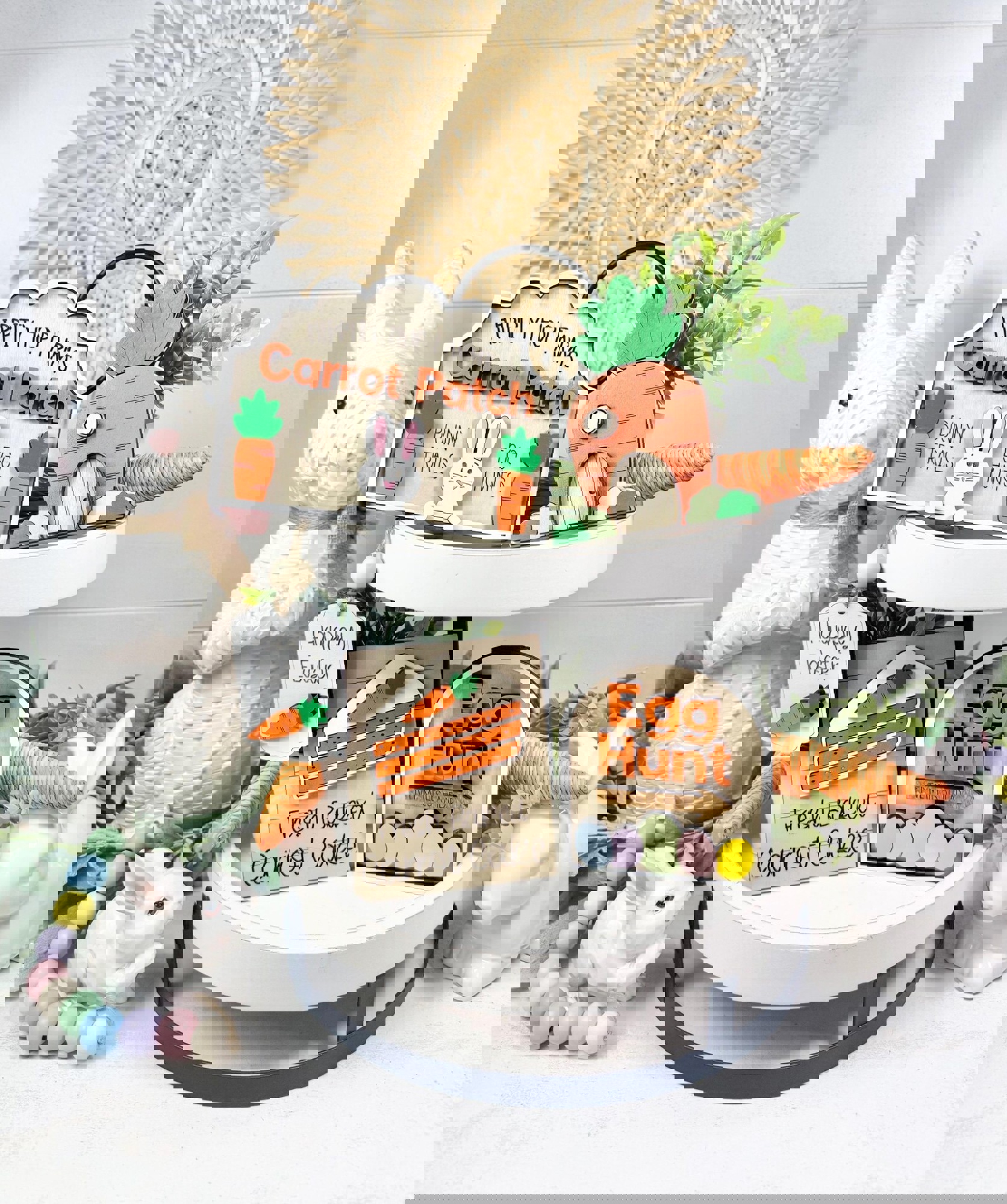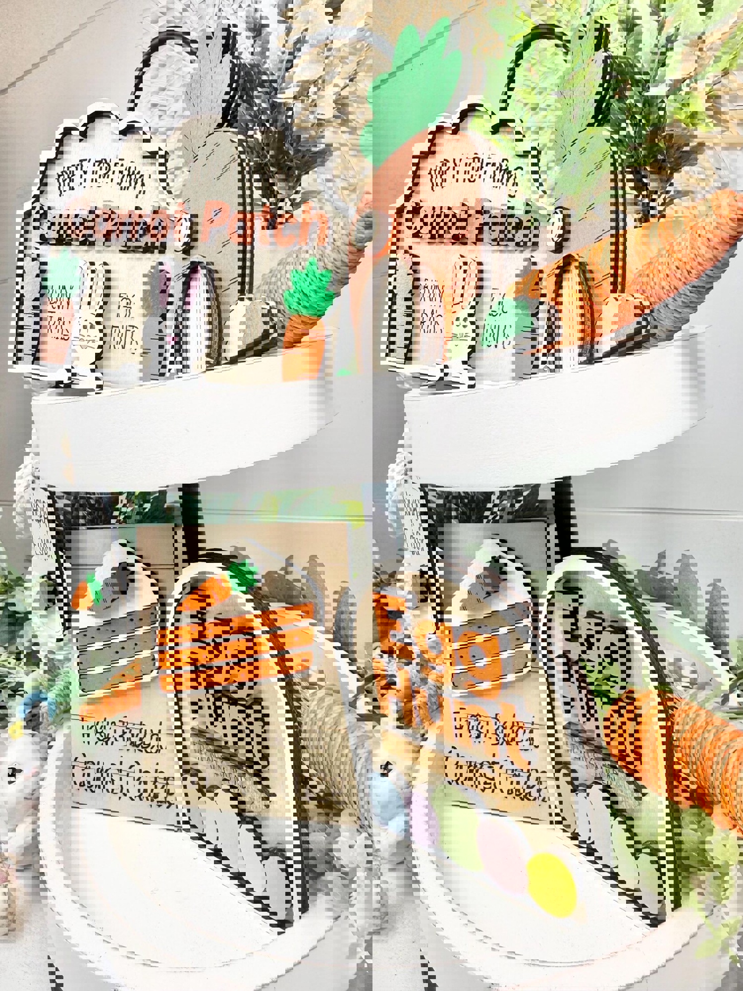 This adorable carrot theme/Easter tiered tray set is the perfect decoration for Easter/Spring.