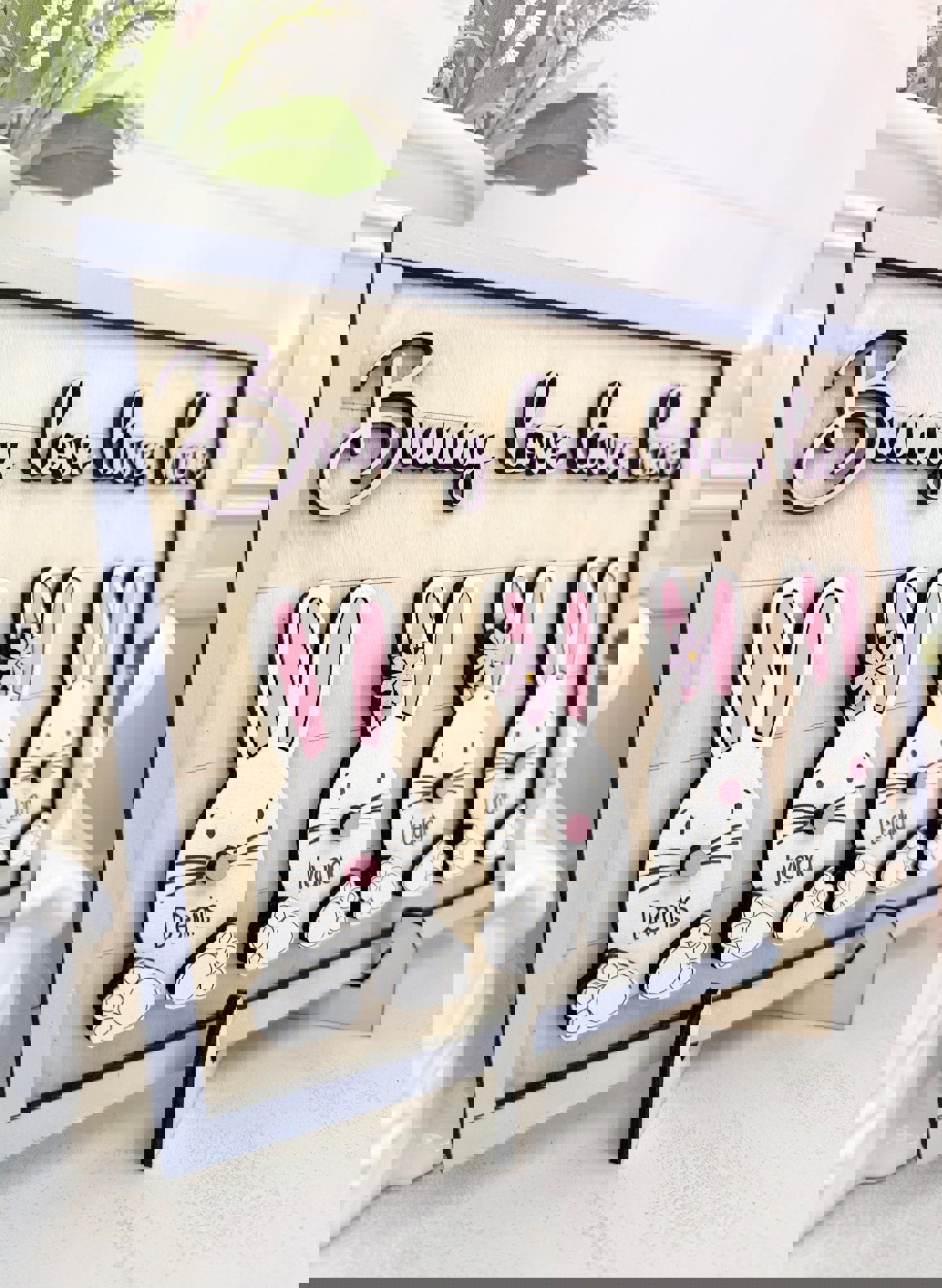 Celebrate spring and family with this personalized bunny family sign, a sweet and cheerful decoration perfect for Easter and the entire spring season. Each bunny can be customized with names, making it a meaningful piece for your home or a thoughtful gift for loved ones.