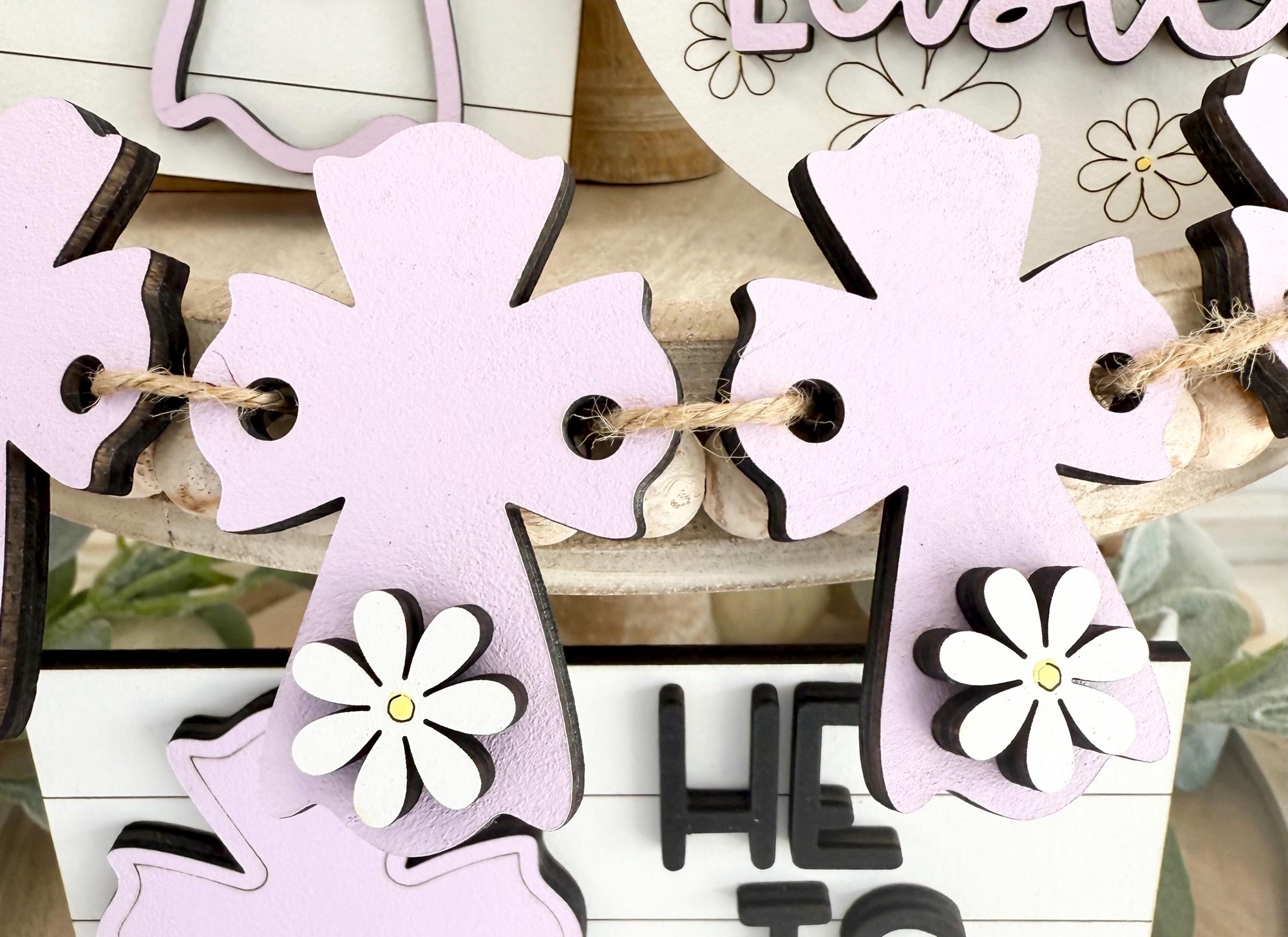 This adorable Easter tiered tray set is the perfect decoration for Easter/Spring.