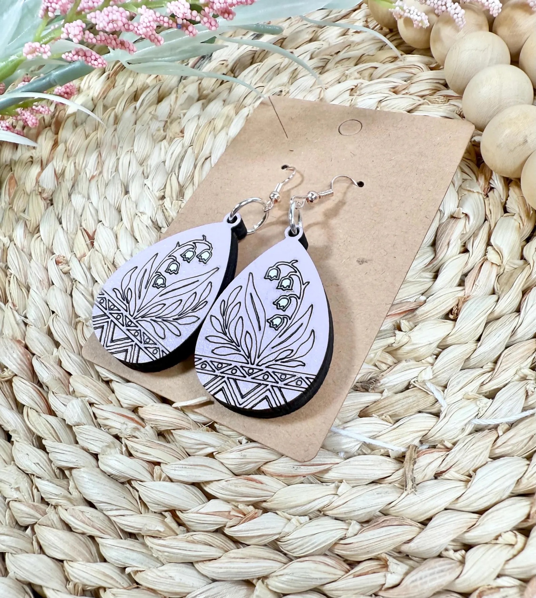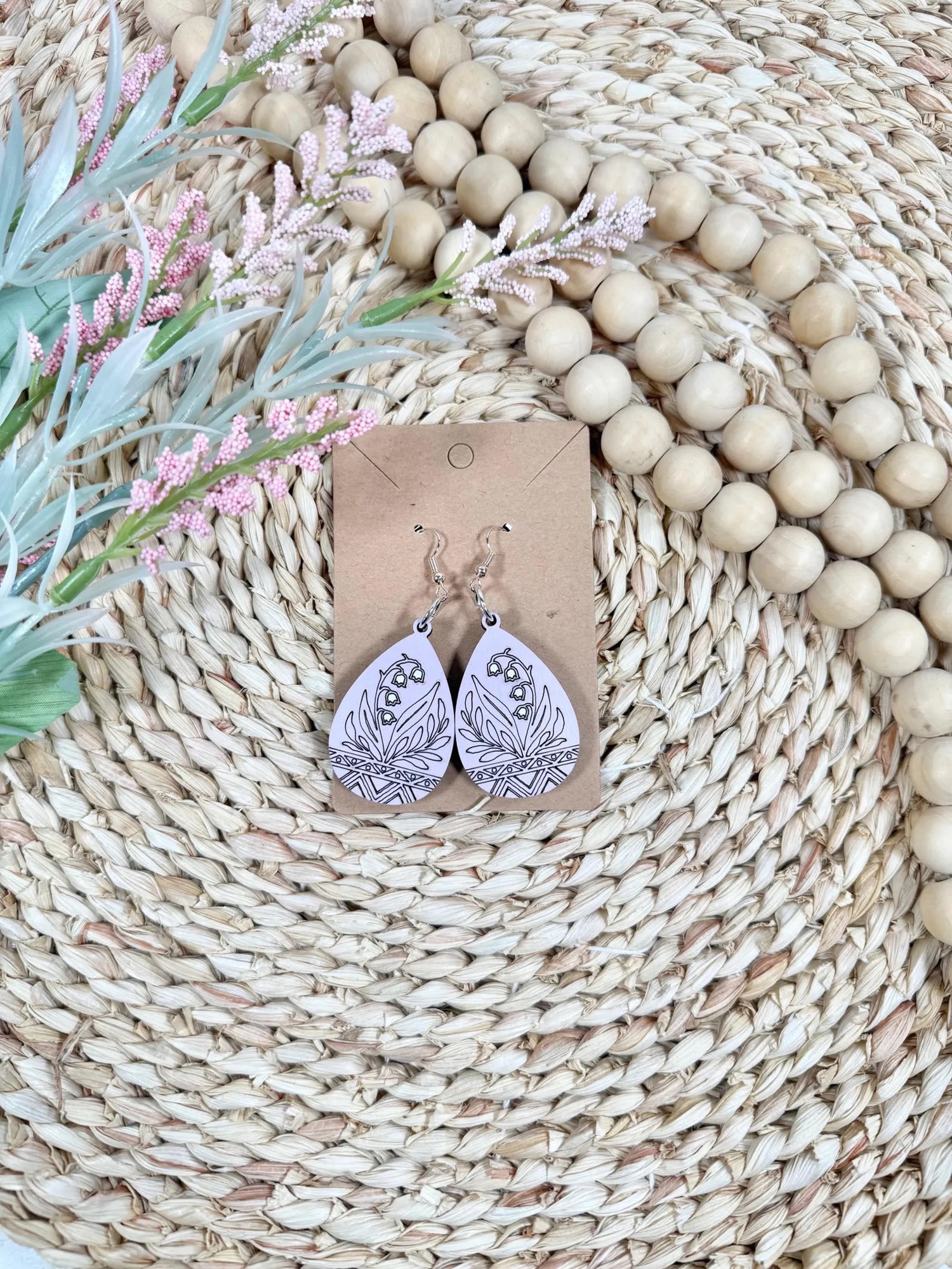 Handcrafted Wooden Lily of the Valley Earrings