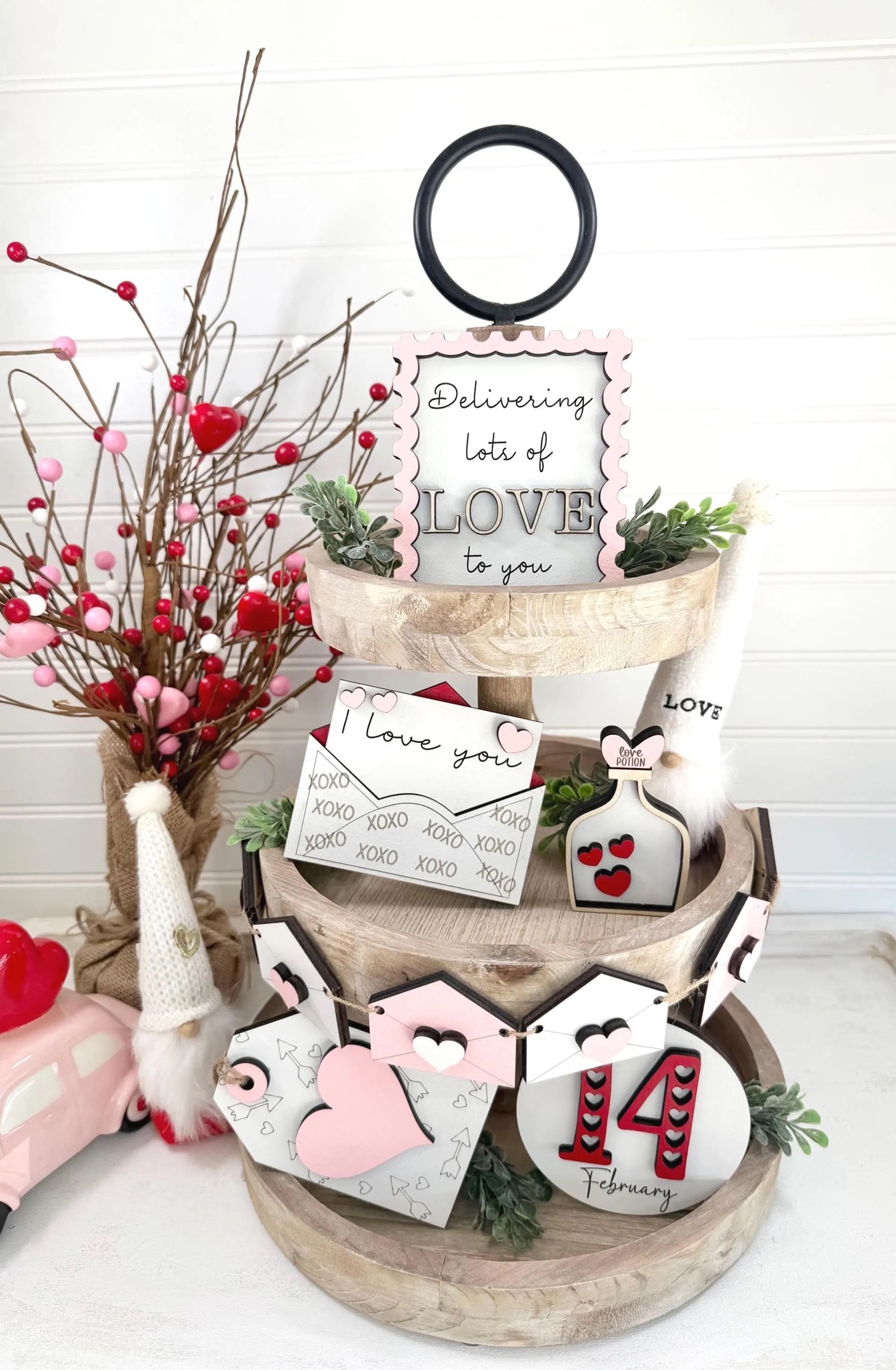 This Valentine's Day Themed Tiered Tray Decor Bundle makes it easy to decorate for Valentine's Day! Our full set includes 7 items to decorate or the pieces can be purchased separately.