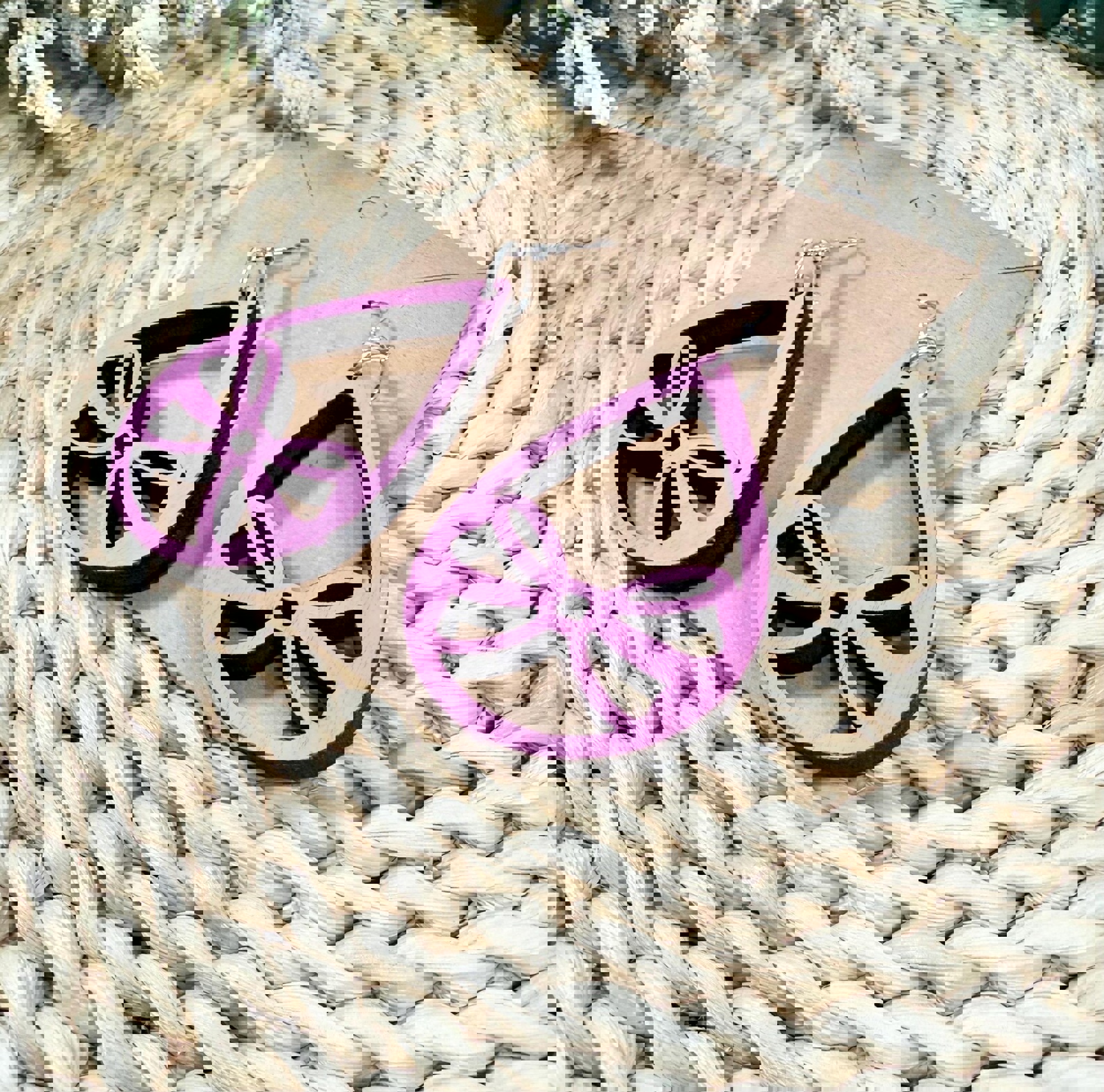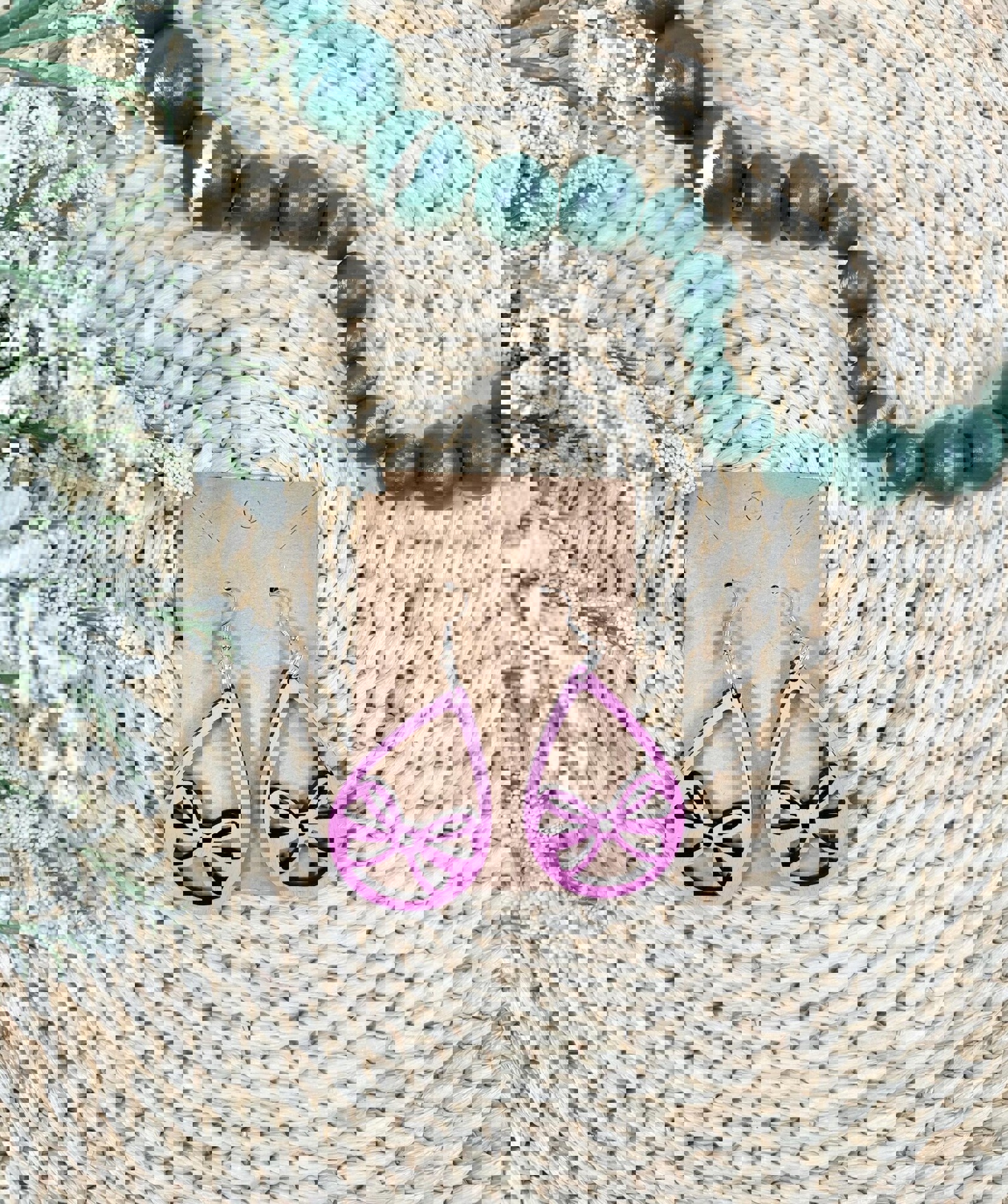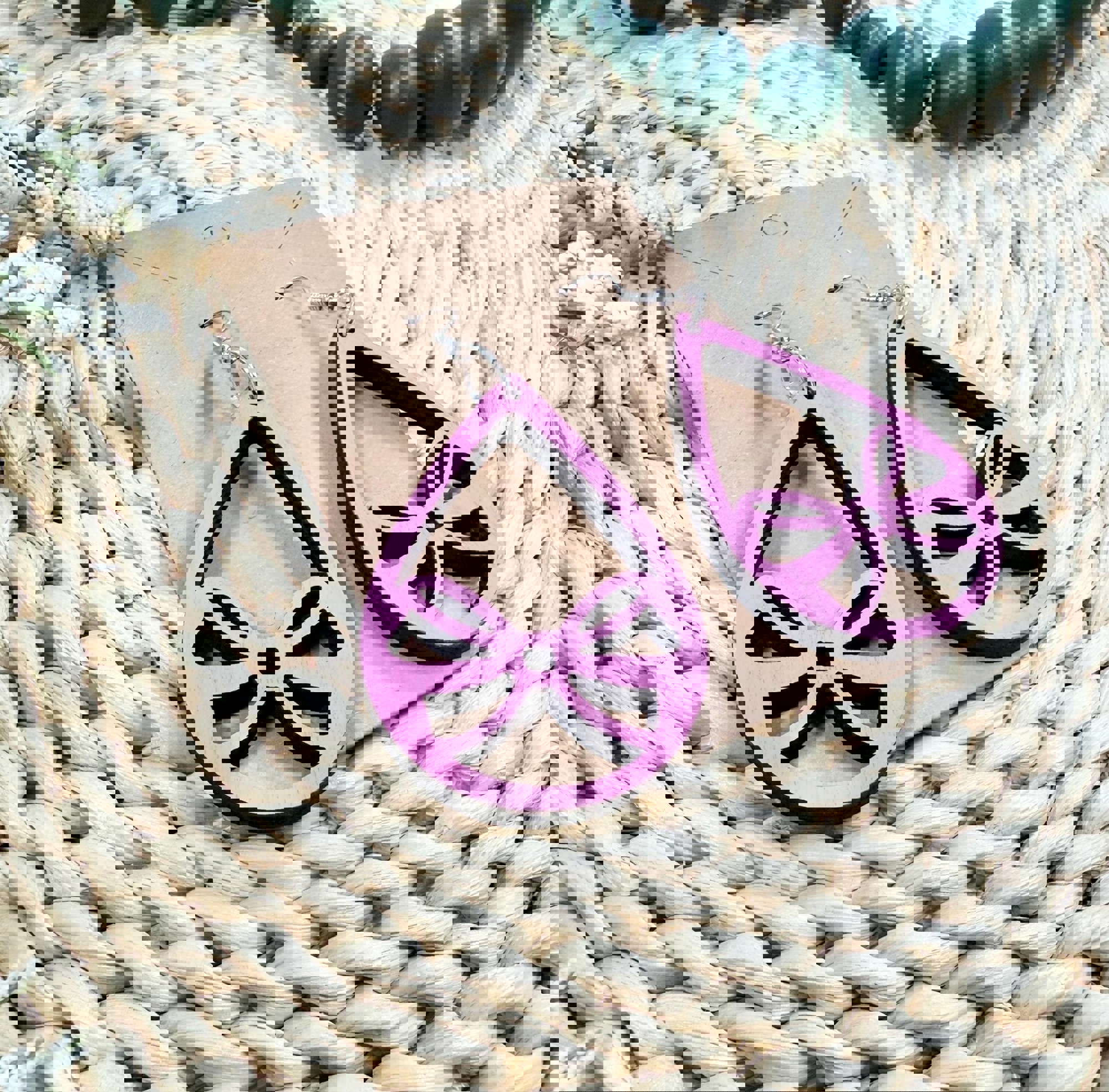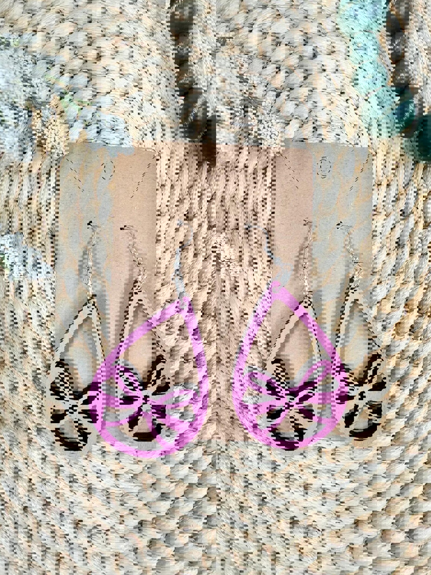 Add a touch of rustic charm to your accessory collection with these beautifully handcrafted and hand-painted wooden earrings shaped like teardrop bow.