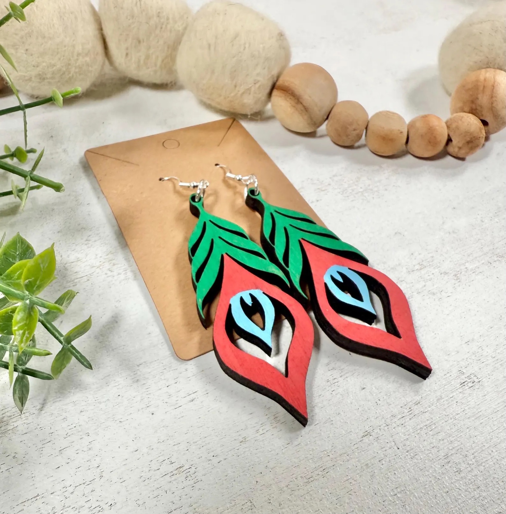 Discover our stunning wood feather earrings, expertly handcrafted to bring a touch of nature to your jewelry collection. These lightweight and unique earrings that have been hand painted making them one of a kind.