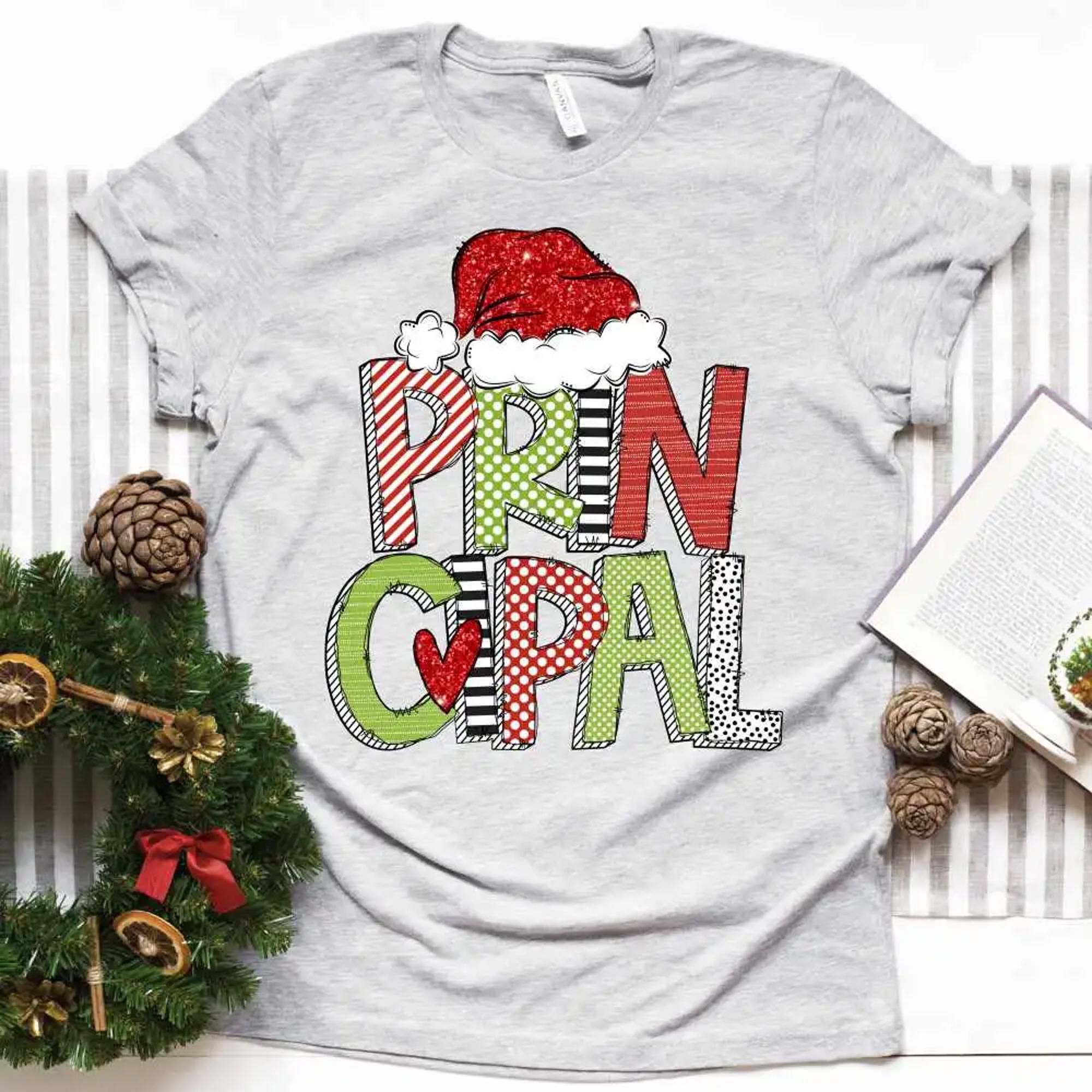 Spread holiday cheer in style with this fun Christmas graphic tee designed just for school staff! Featuring a Santa hat and playful patterns in classic red and green, this shirt is available in over 20 titles including Teacher, Librarian, Lunch Crew, School Nurse, and more!