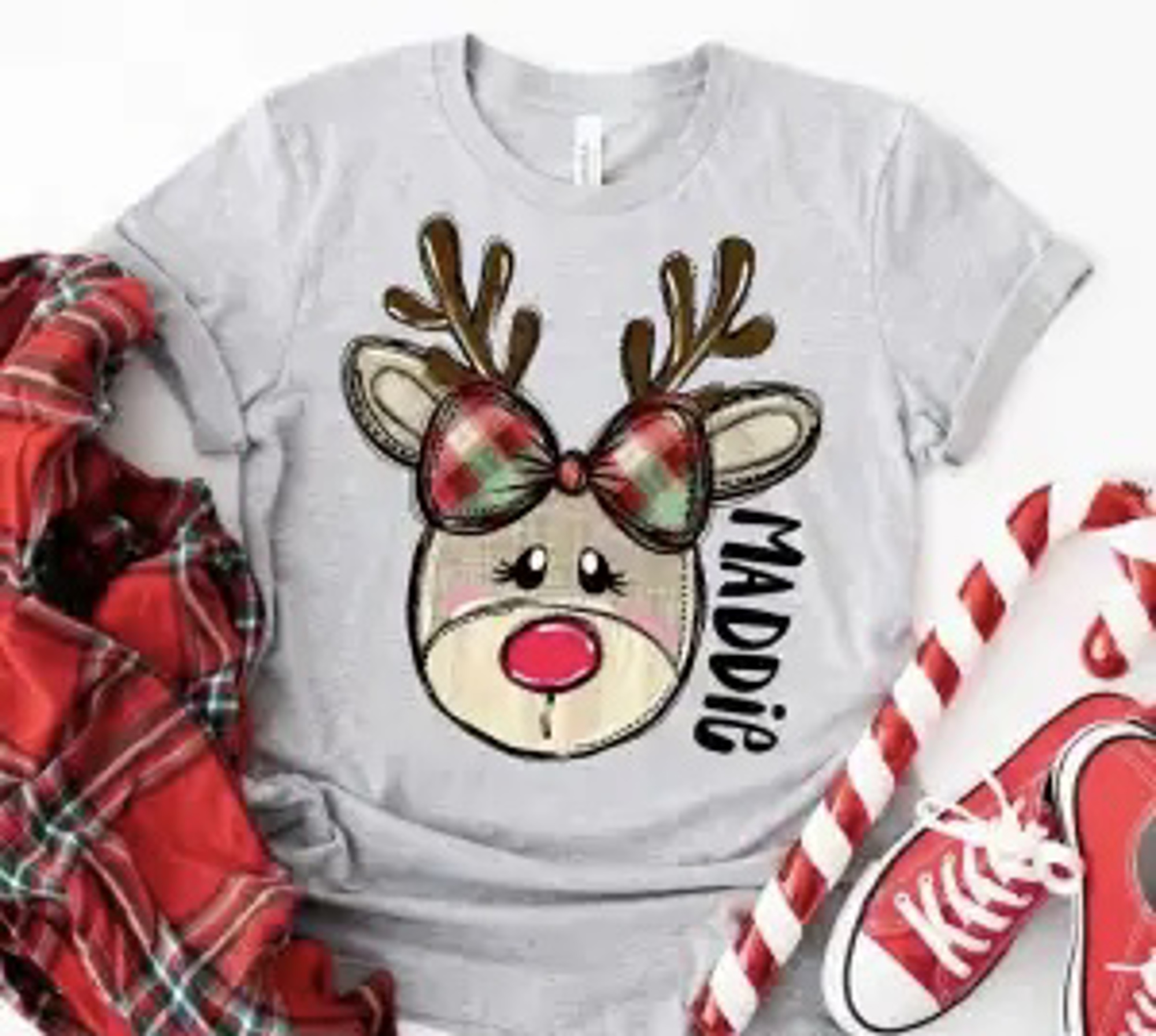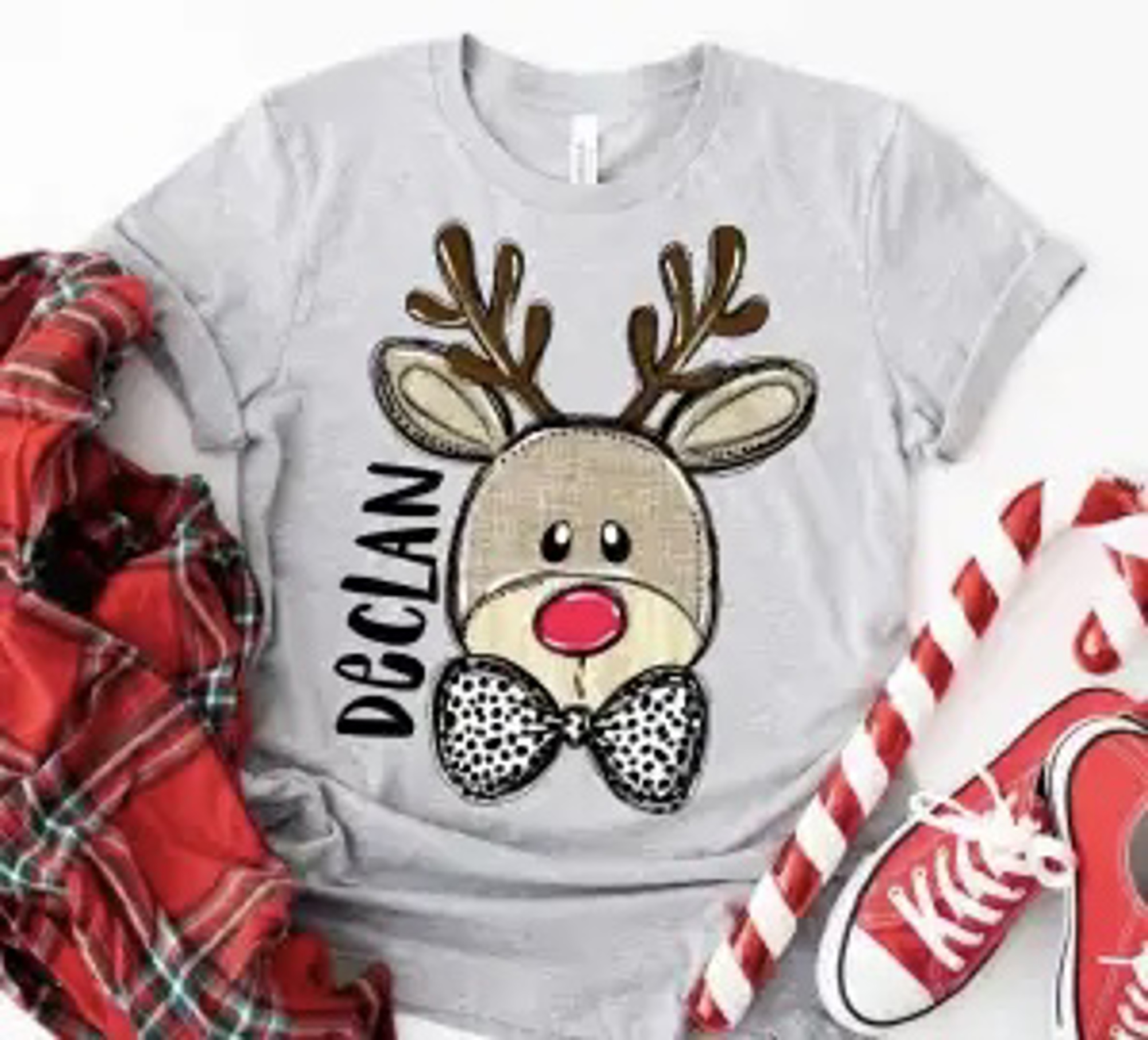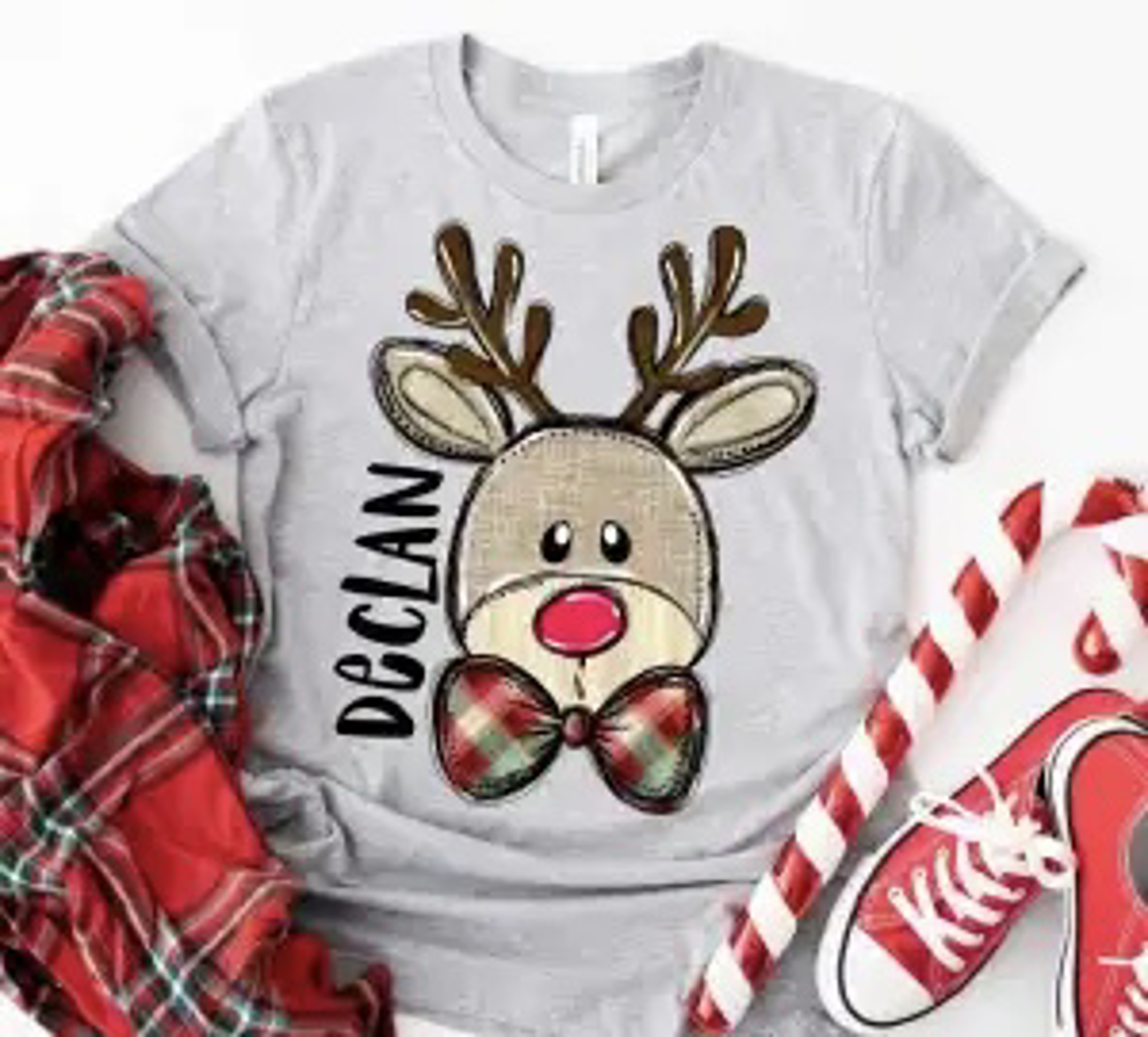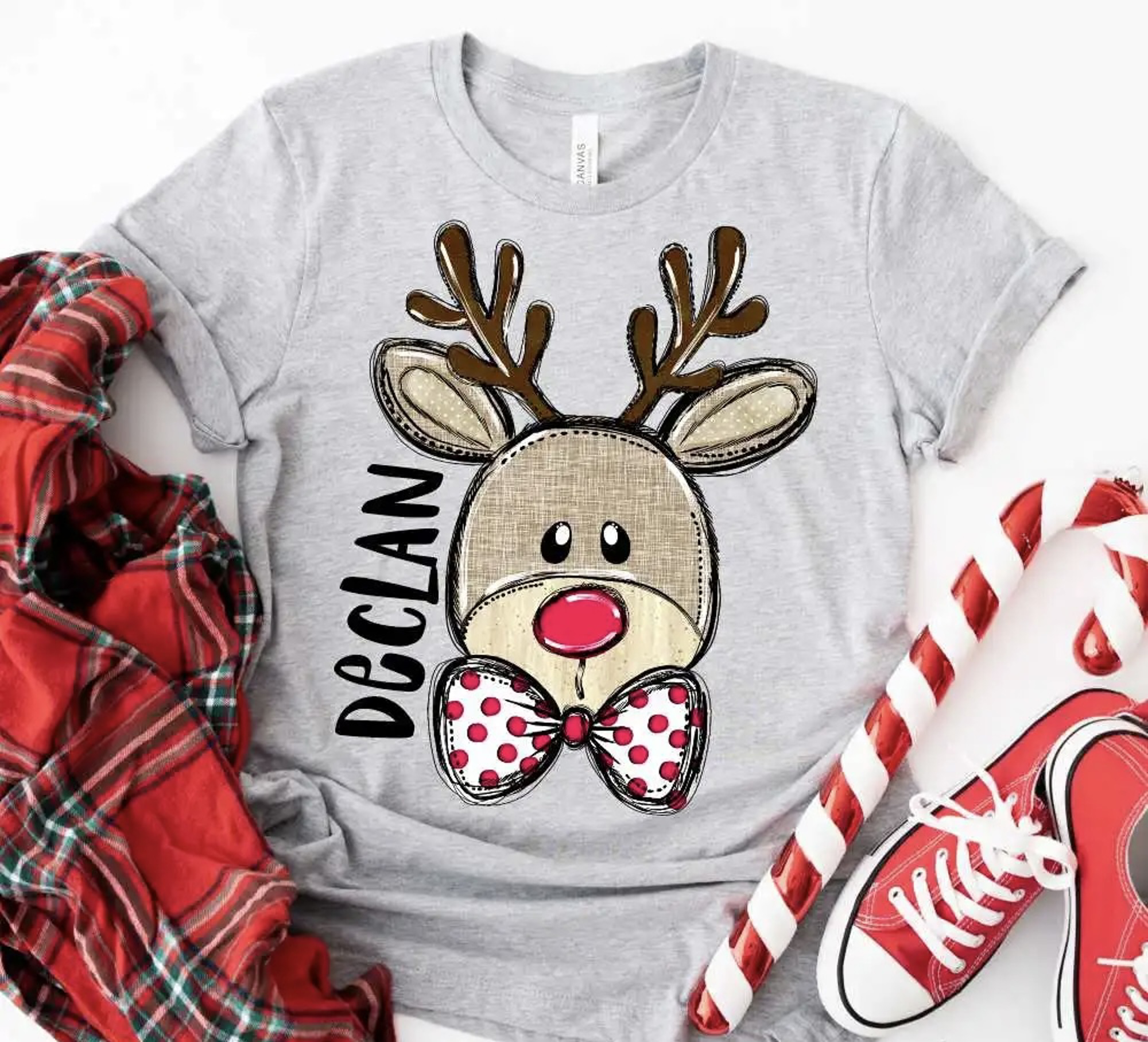 Make the holidays extra magical with these darling personalized reindeer tees! Perfect for school parties, Santa visits, photos, and festive family fun. Each shirt features a sweet reindeer face with your child’s name and your choice of bow or bow tie design.