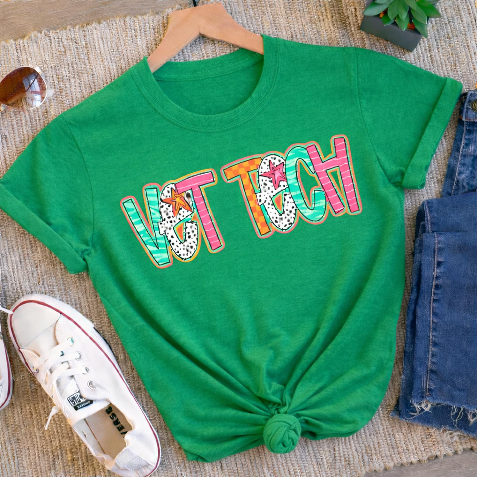 Fun + colorful Vet Tech tee perfect for vet techs, vet assistants, and vet students. Soft, unisex fit + everyday style.