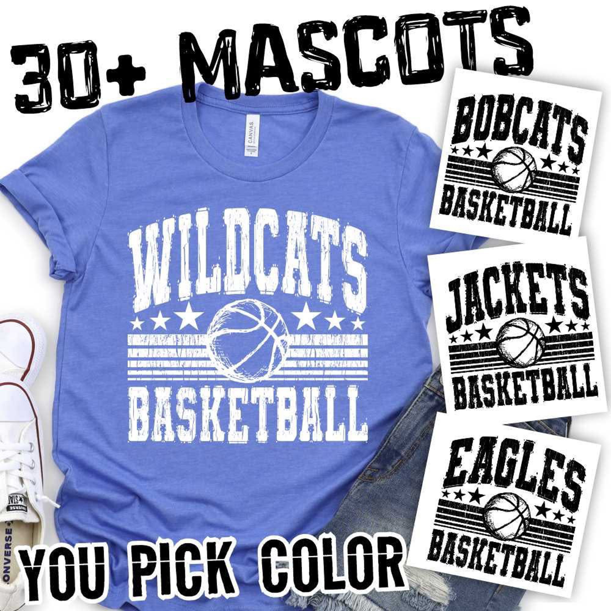 Rep your team in style with this Vintage Mascot Basketball Tee! Designed with a bold, distressed print, this shirt brings a rugged, game-day look that’s perfect for players, coaches, and fans alike.