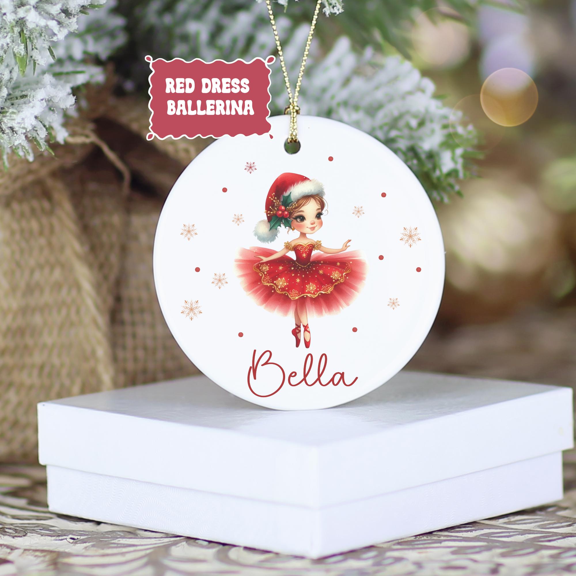 Christmas Ballerina Ornament – Personalized Ballet Dancer Gift - Christmas Red Dress, Ballerina with Nutcracker, Green Dress or Pink Dress
