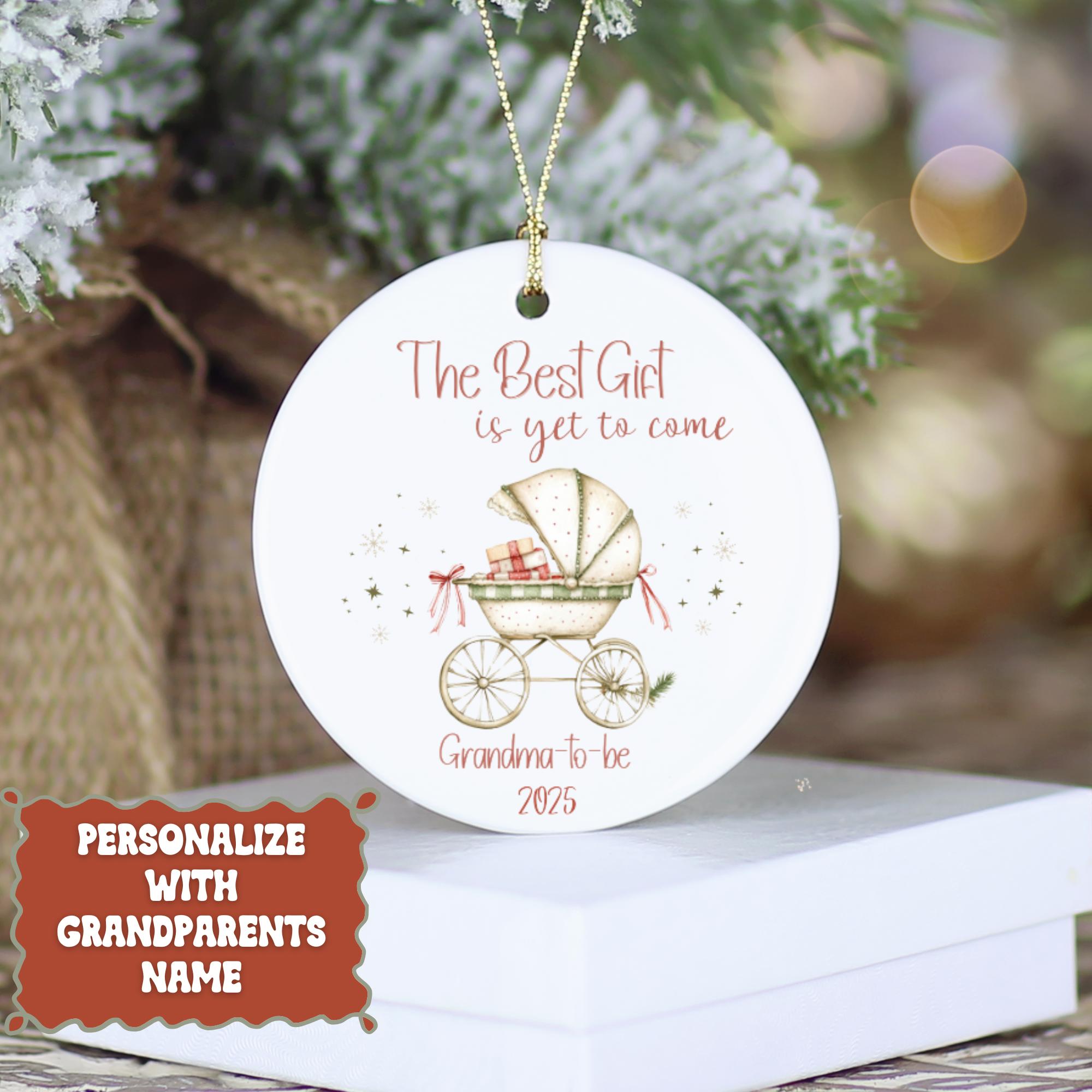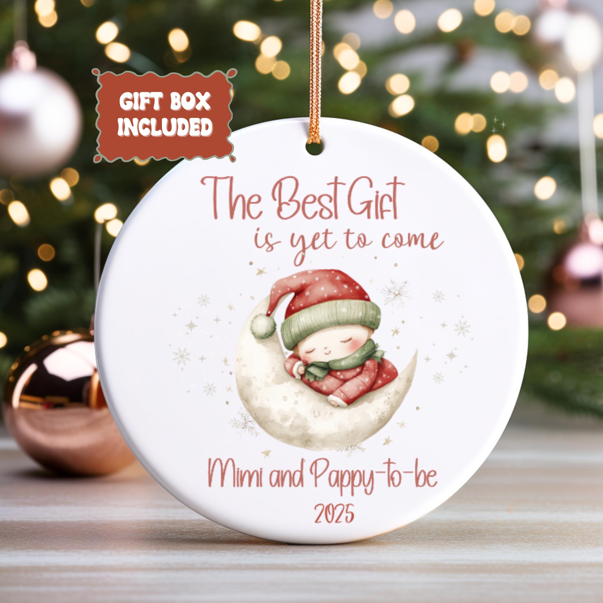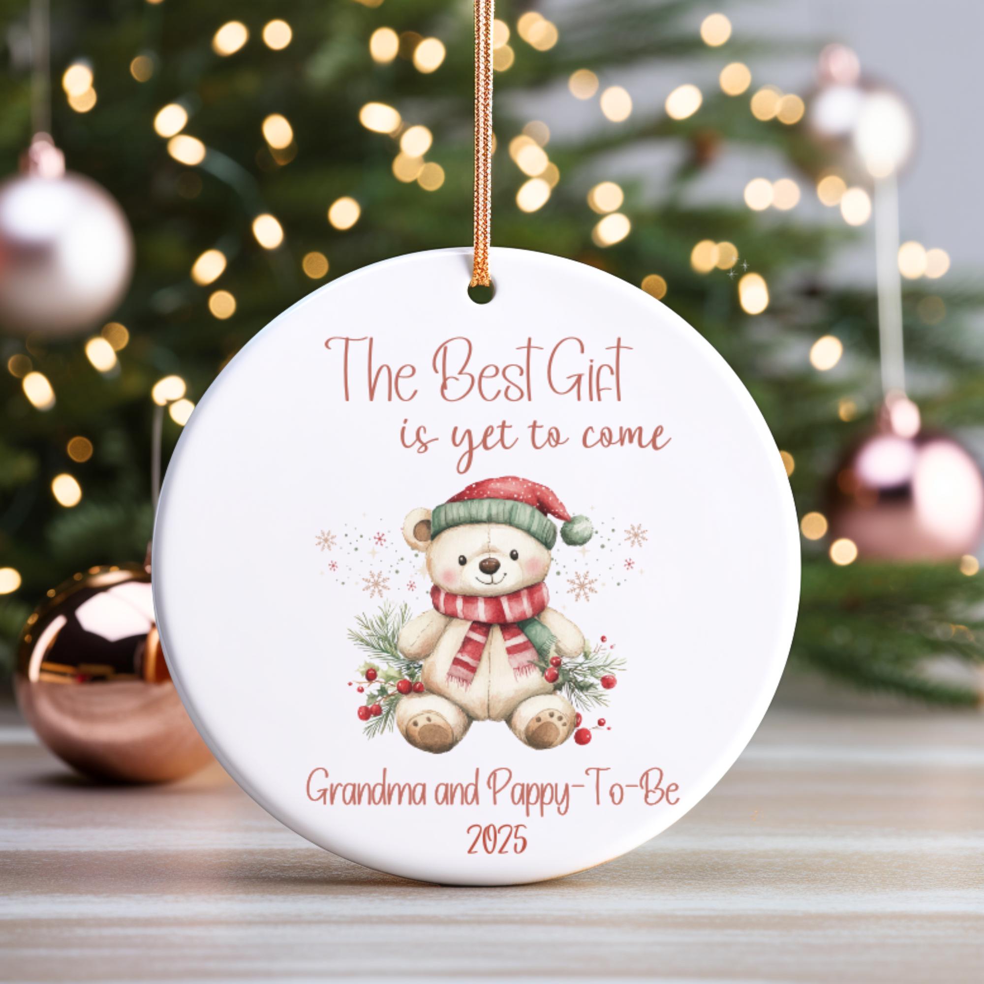 Crafted with care, this ornament is a timeless reminder of the love and excitement that comes with welcoming a new little one. It makes a perfect gift for grandparents-to-be, parents, or anyone celebrating a growing family this Christmas.