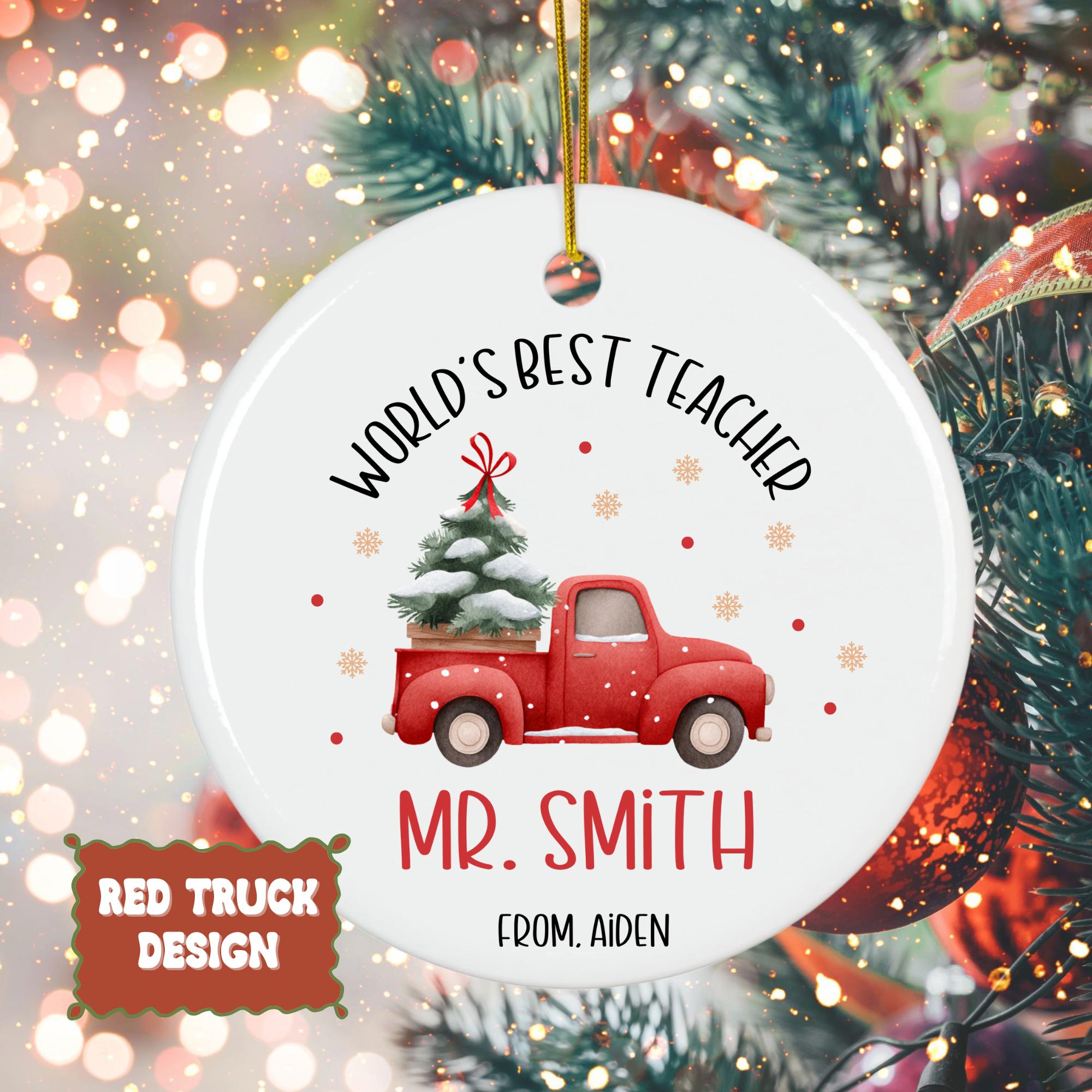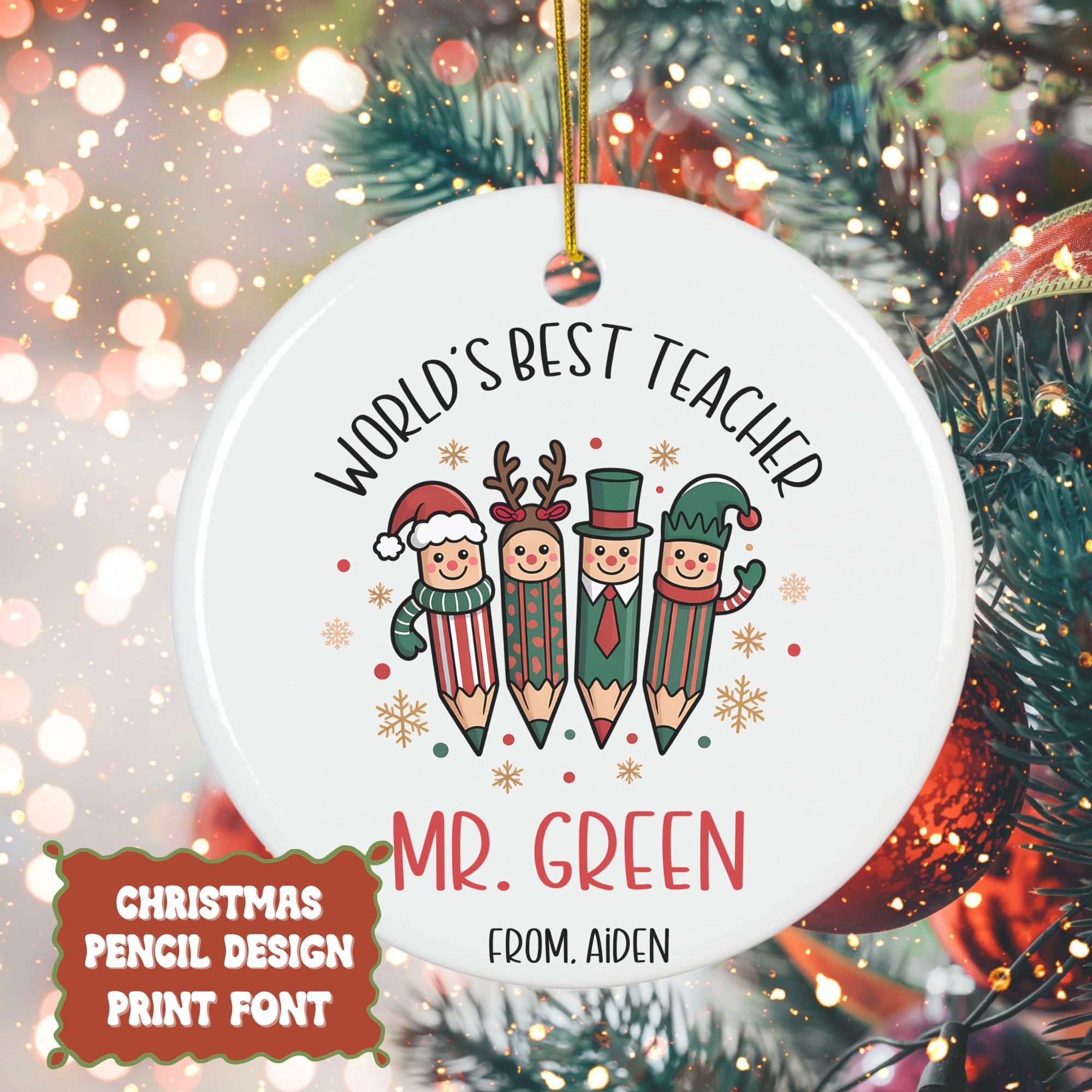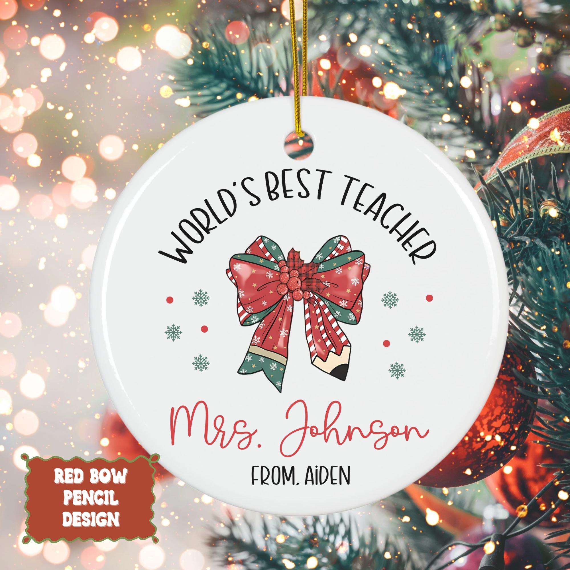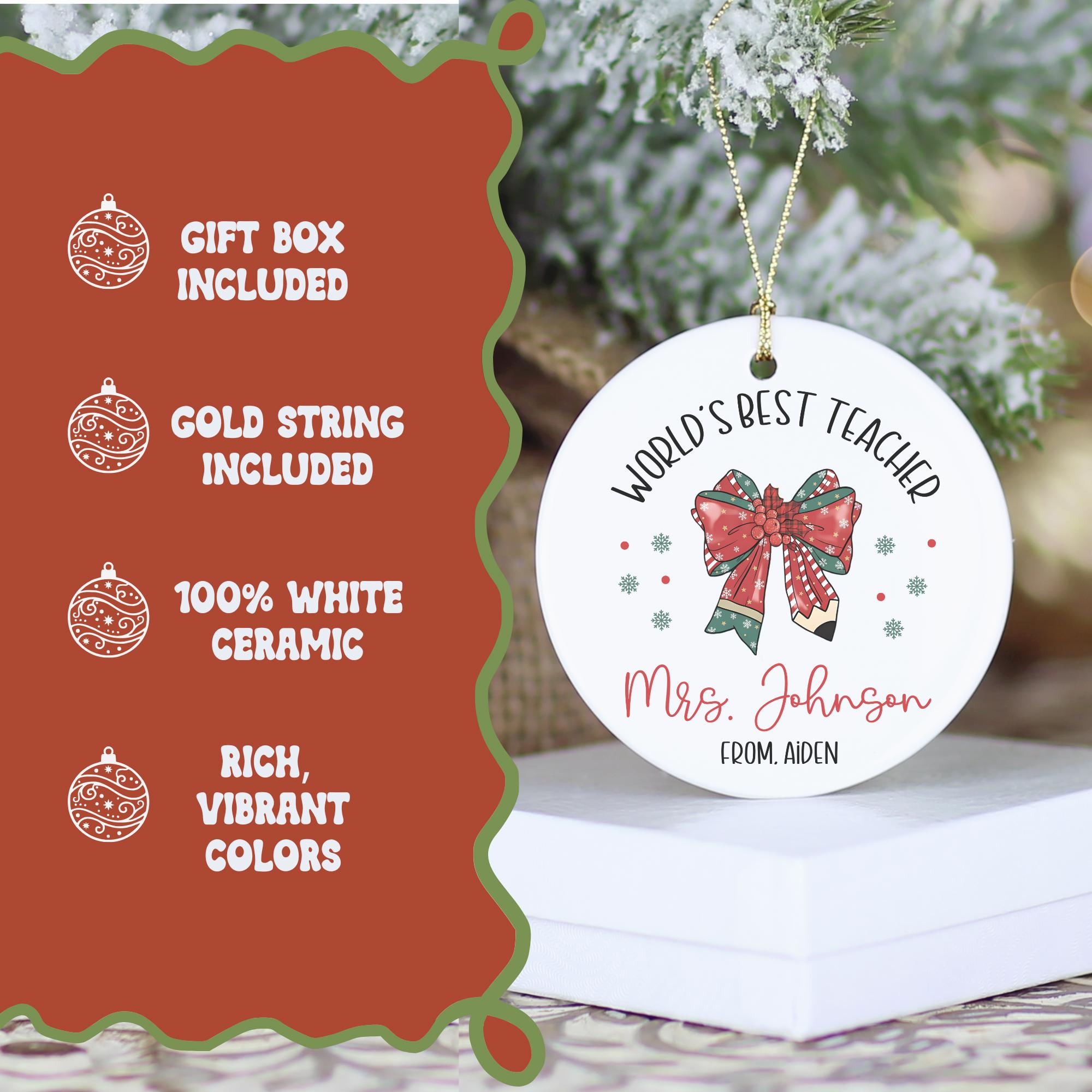 World’s Best Teacher Personalized Christmas Ornament | Custom Teacher Gift with Teacher's Name and Signed by Student| 4 Design Options