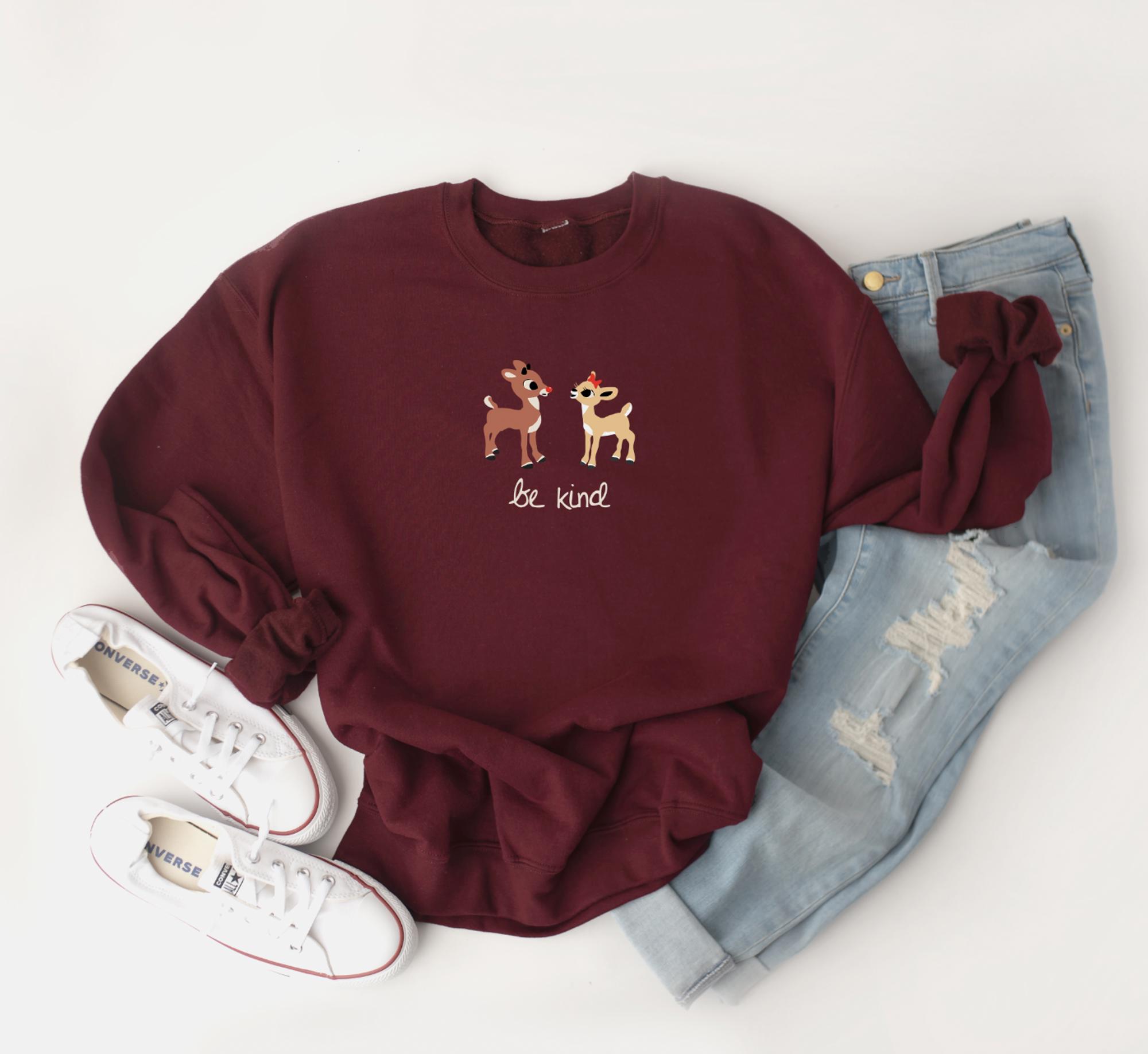Adorable Be Kind Reindeer Rudolph Christmas Sweatshirt