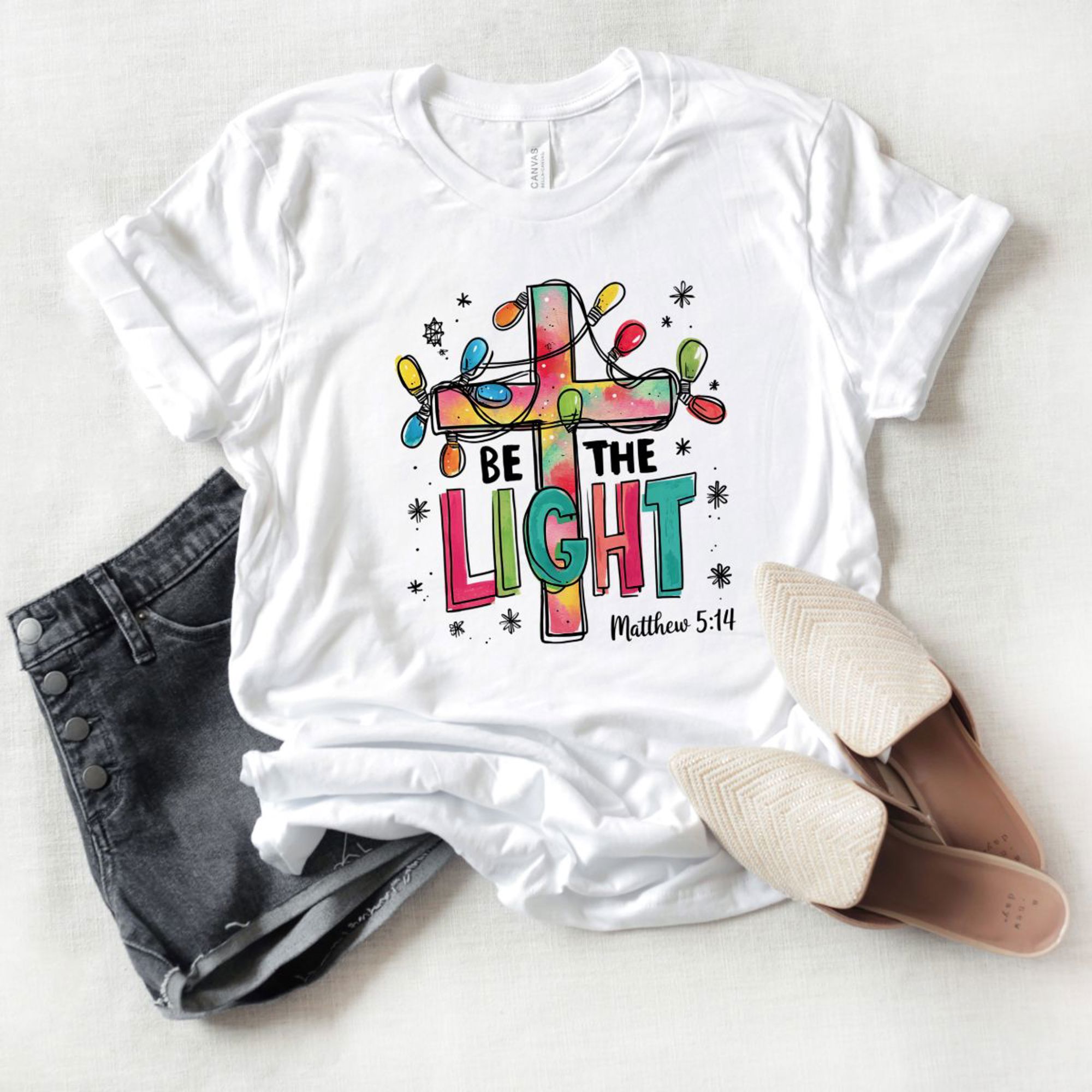 Be The Light Christmas Cross with Lights - Soft Bella Canvas T-Shirt