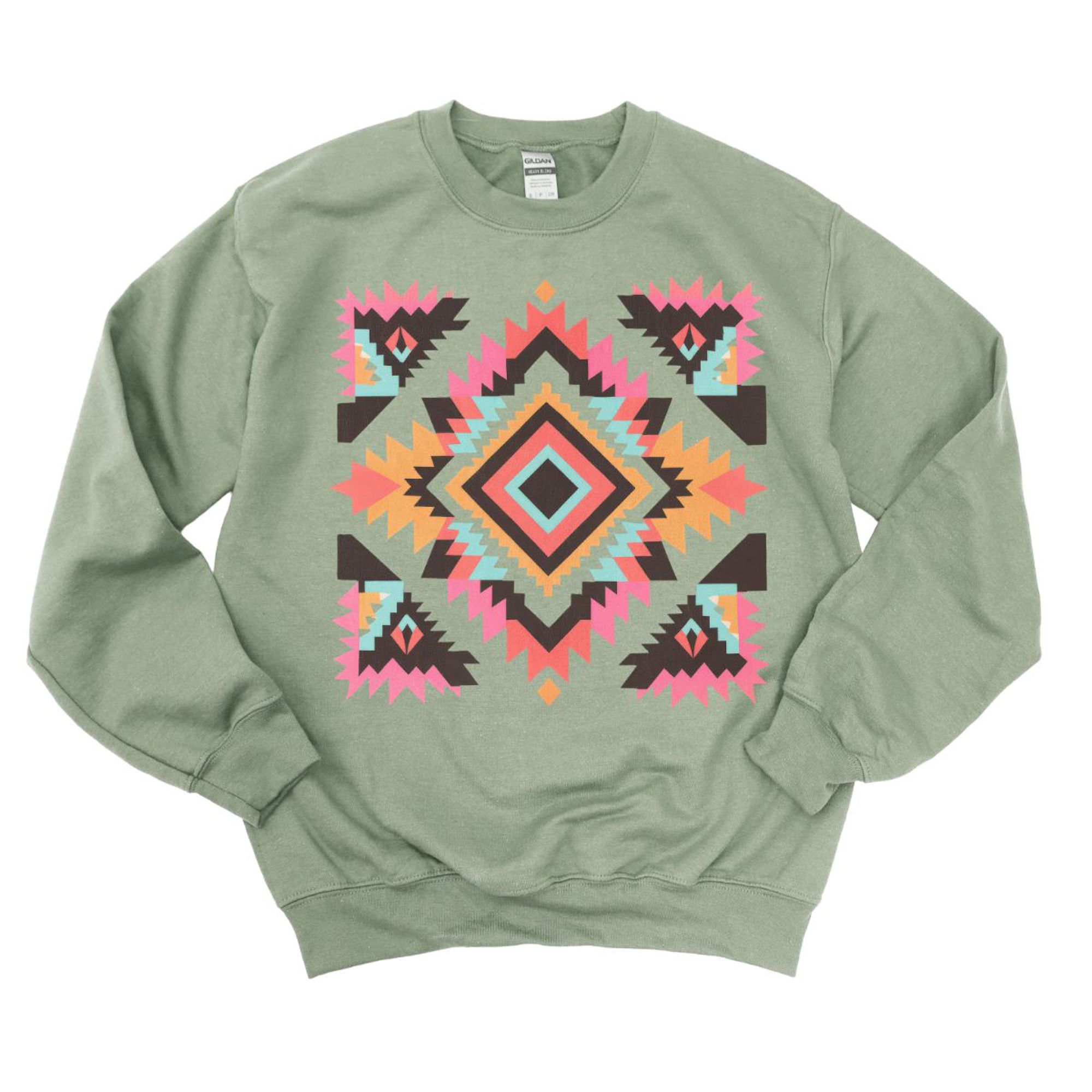 Colorful Aztec Design On A Cozy Drop Shoulder Sweatshirt