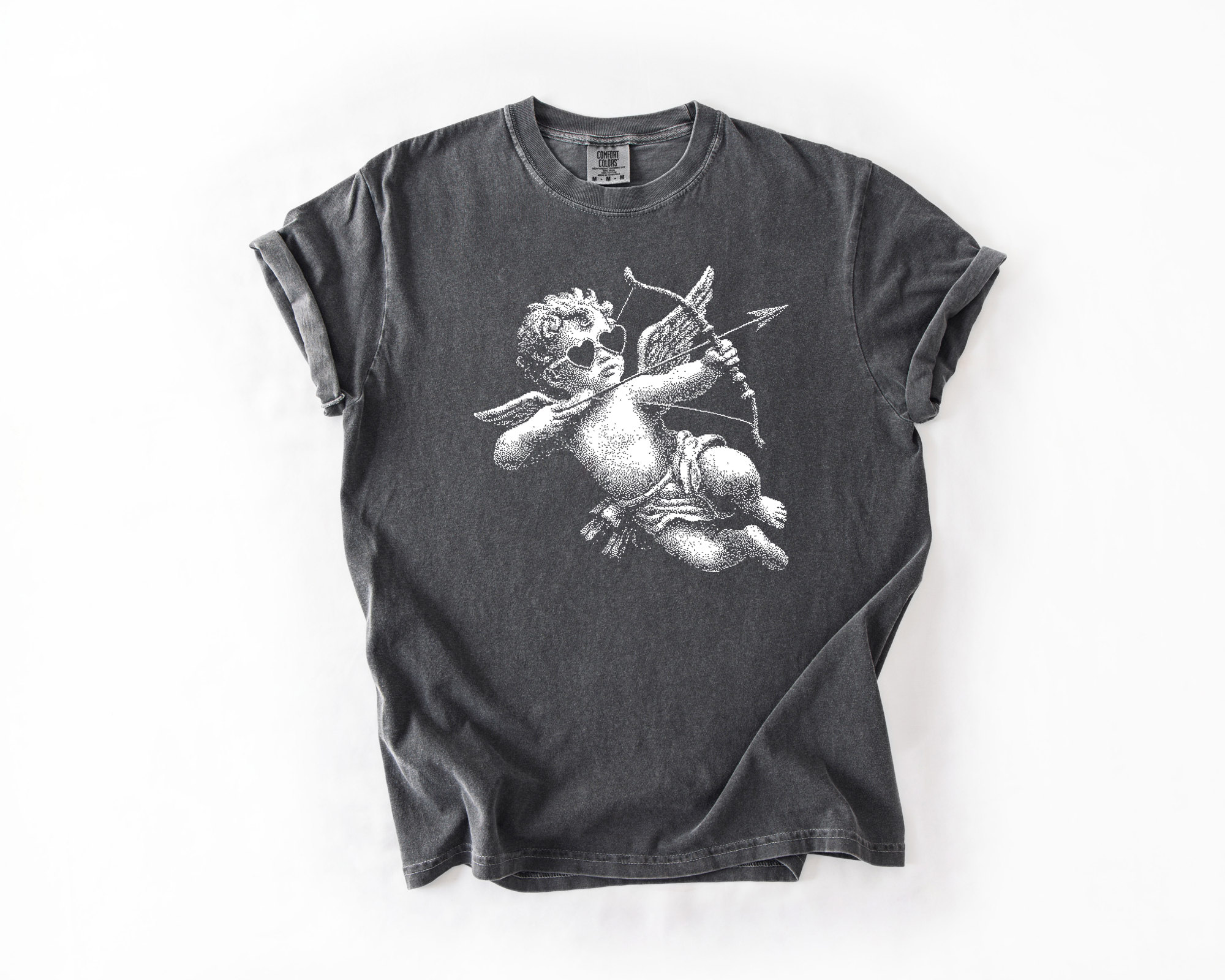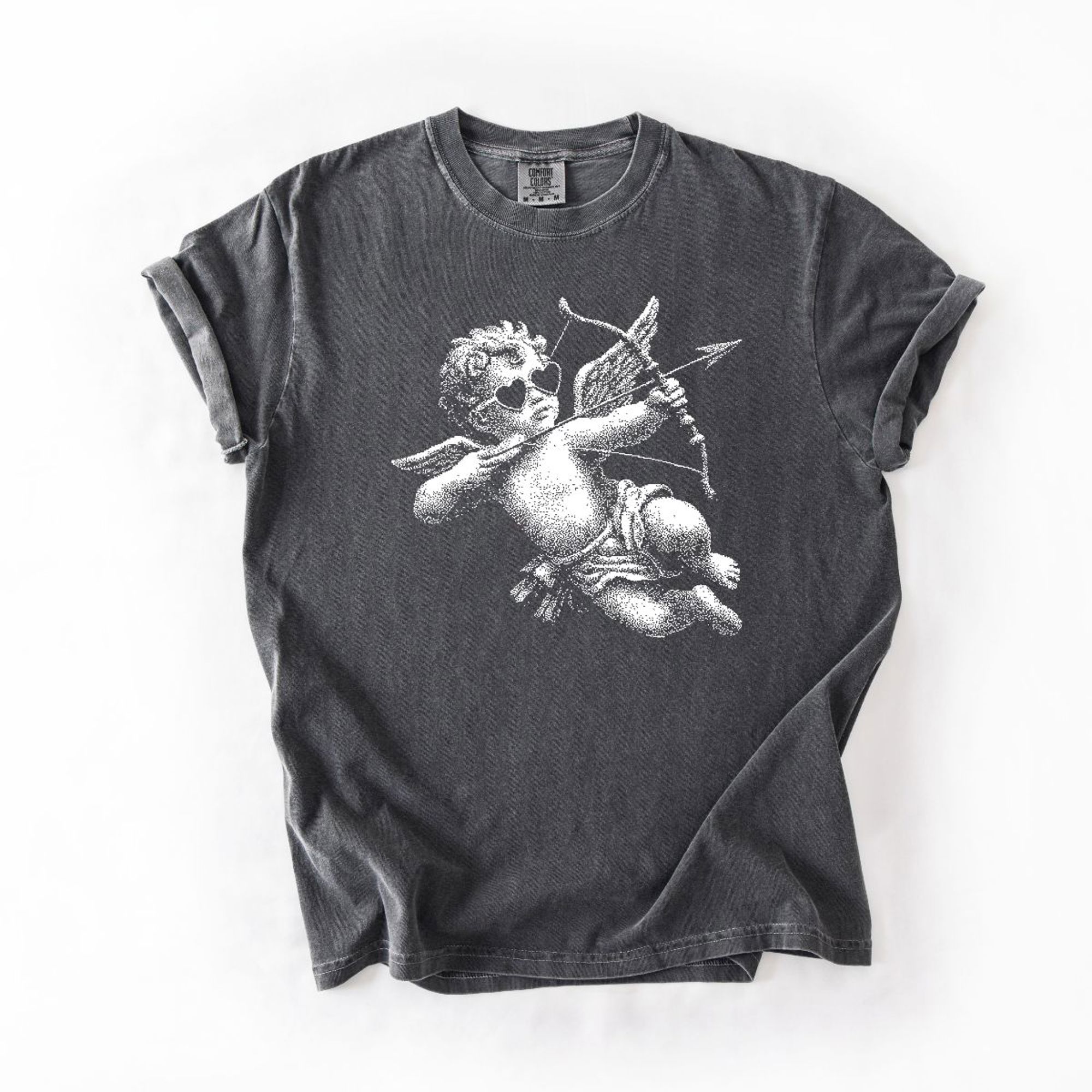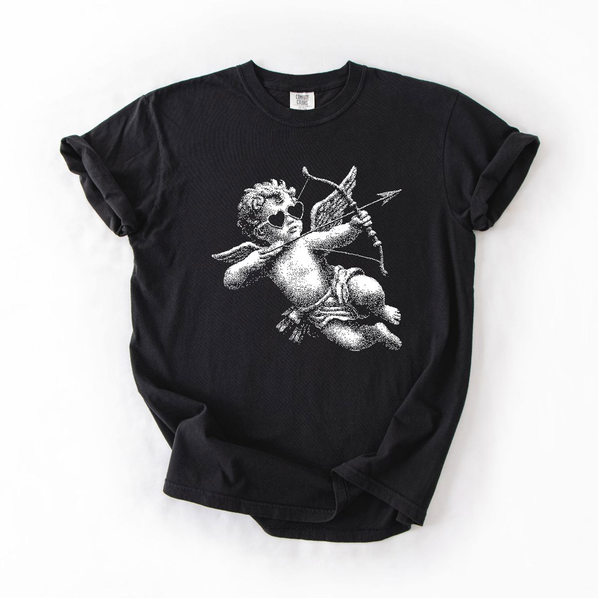 Cupid With Bow Valentines Day Half Tone - T-Shirt (Crewneck) 100 Cotton Heavyweight Tee (Unisex) Comfort Colors