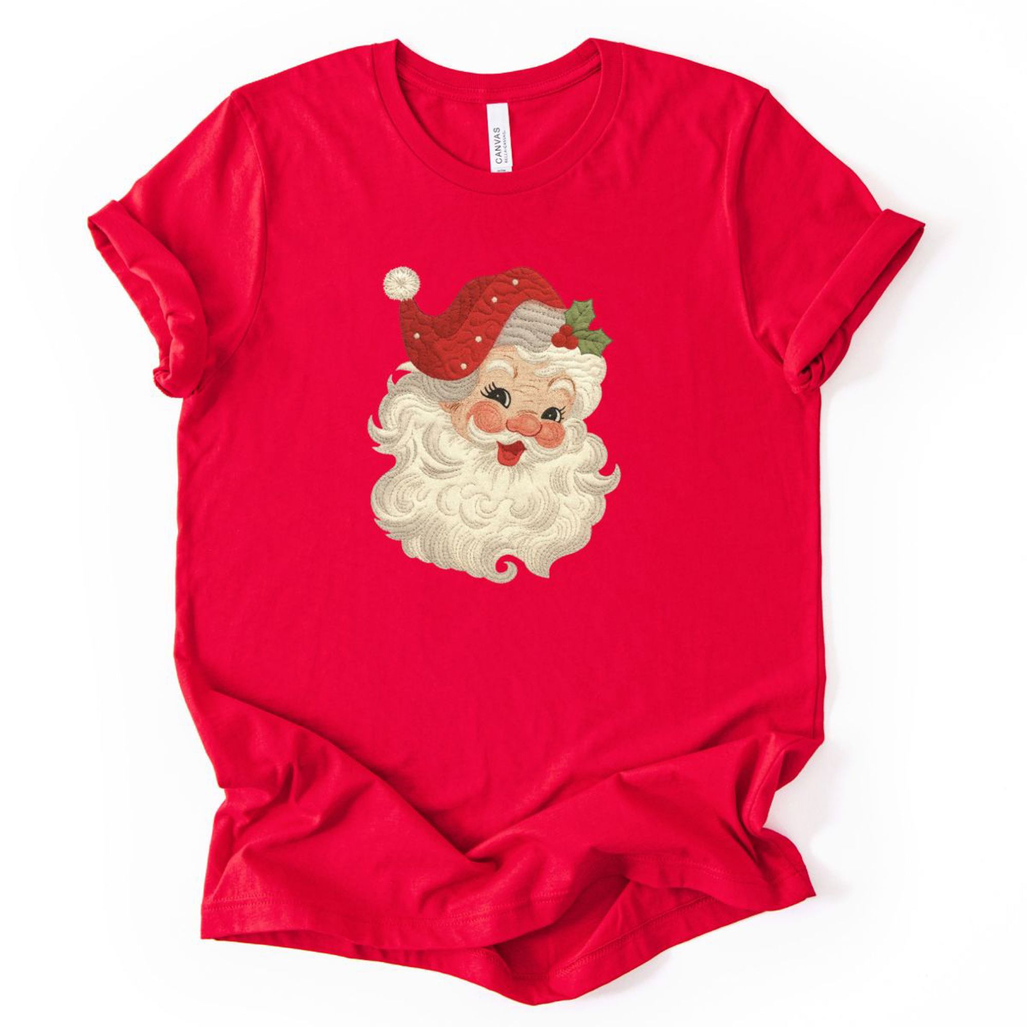 Faux Quilted Retro Jolly Santa Claus Christmas - Soft and Comfy Bella Canvas T-Shirt