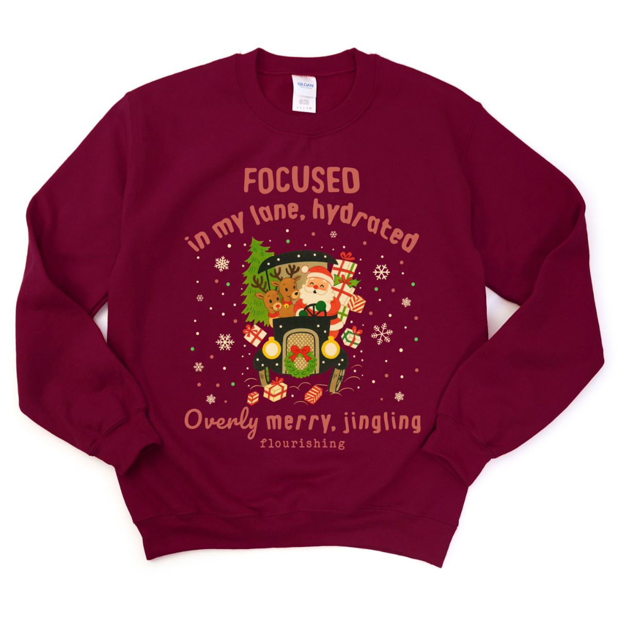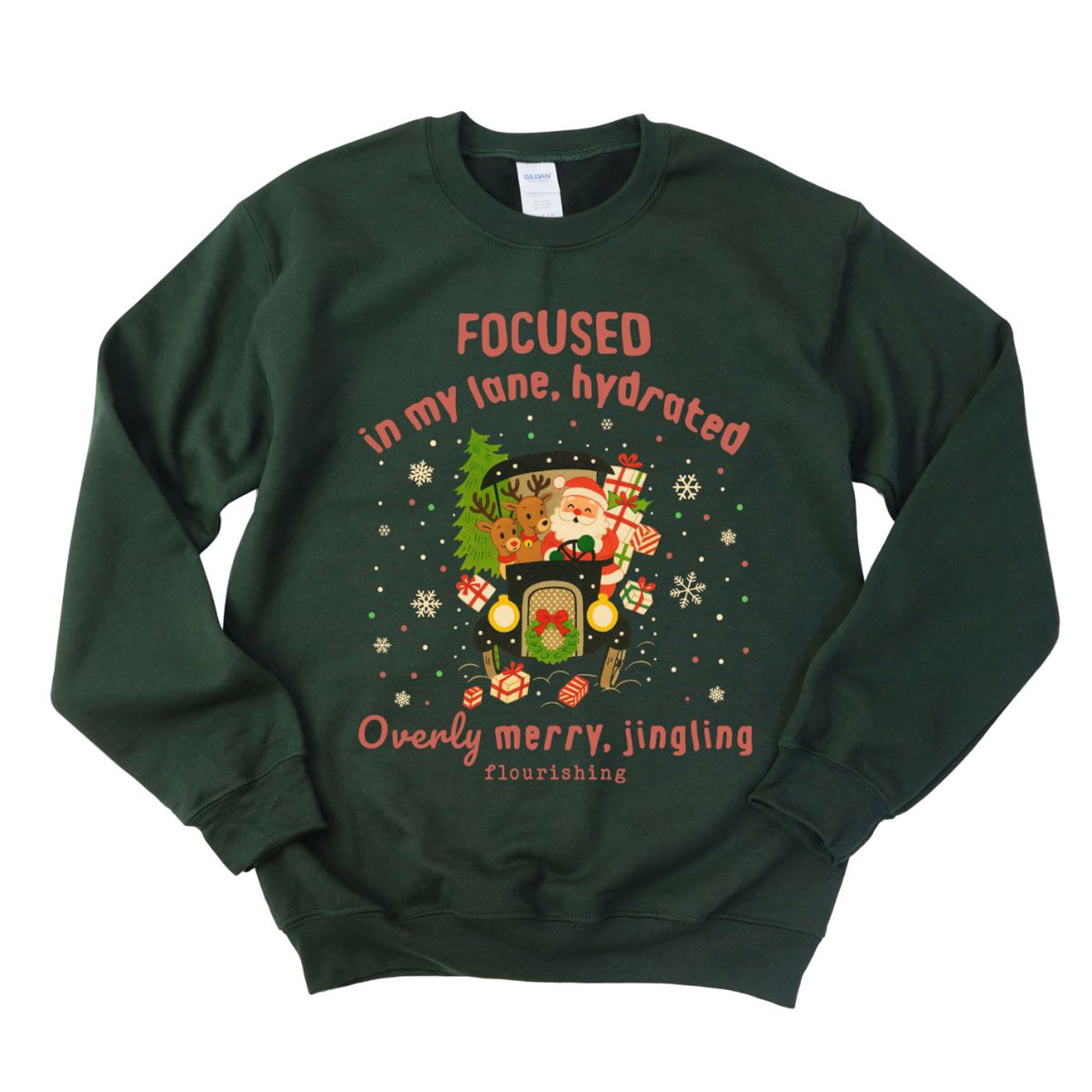 Focused,In My Lane, Hydrated, Overly Merry, Jingling, Flouring Funny Vintage Christmas Santa Claus