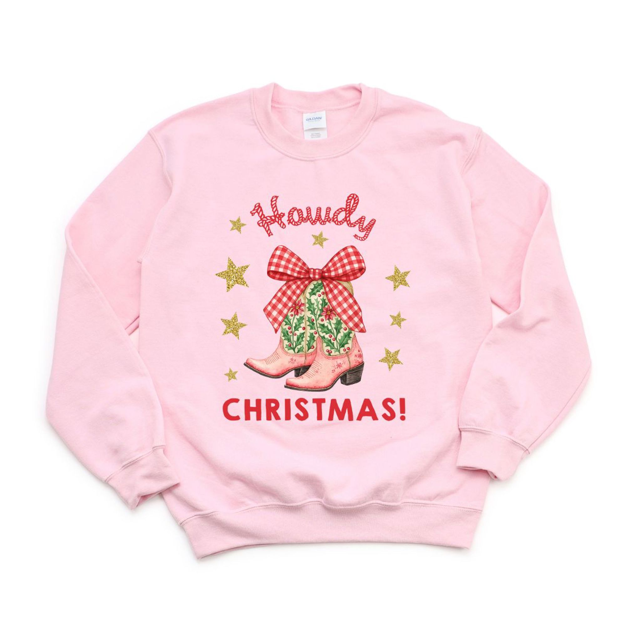 Howdy Christmas Cowboy Boots - Sweatshirt (Crewneck) Poly-Cotton Colors (Unisex) Gildan