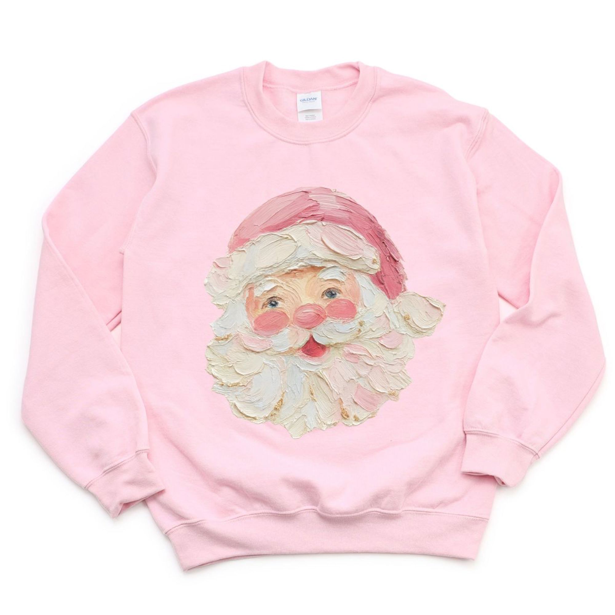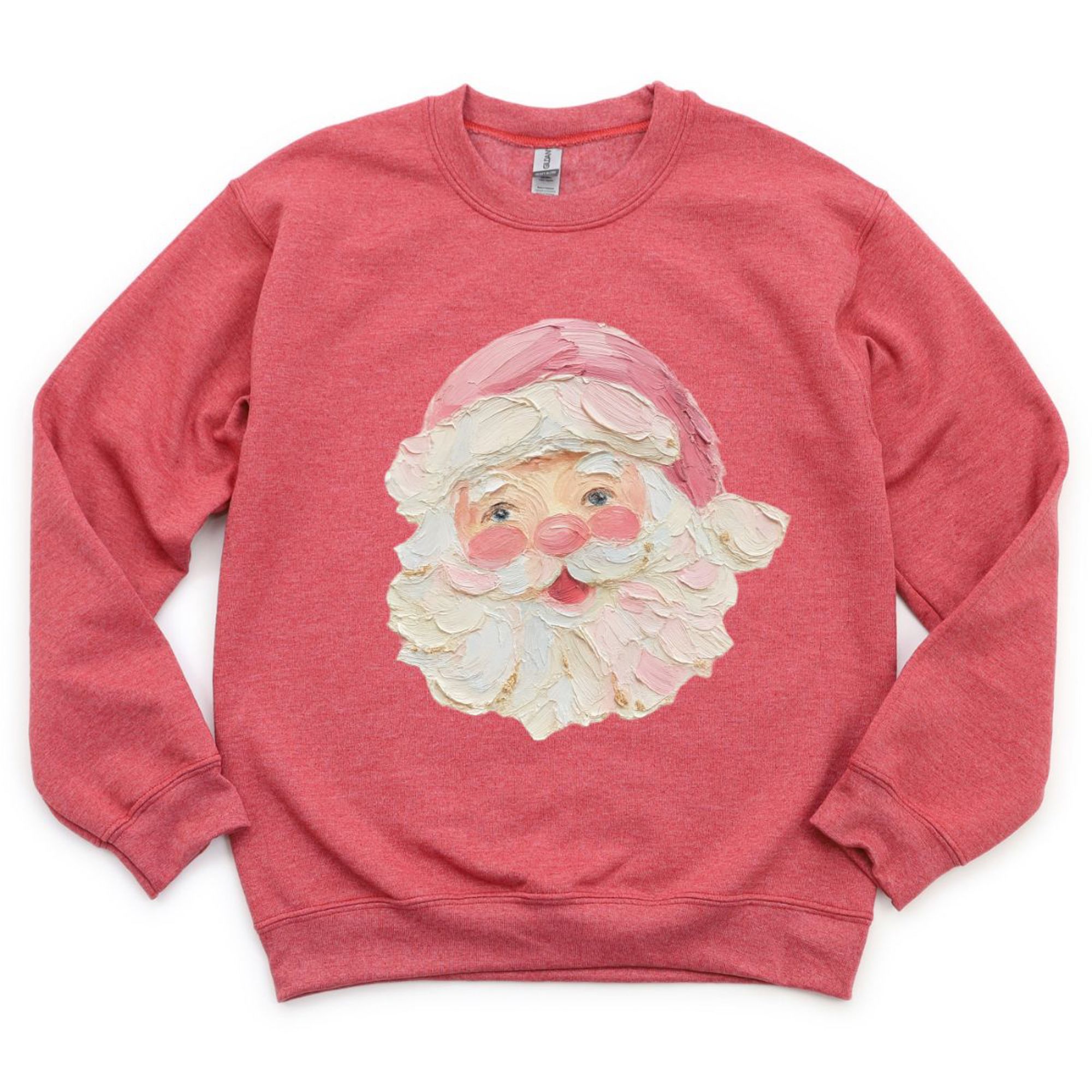 Impressionist Painted Jolly Santa Claus Christmas Painting - Soft Drop Shoulder Sweathshirt