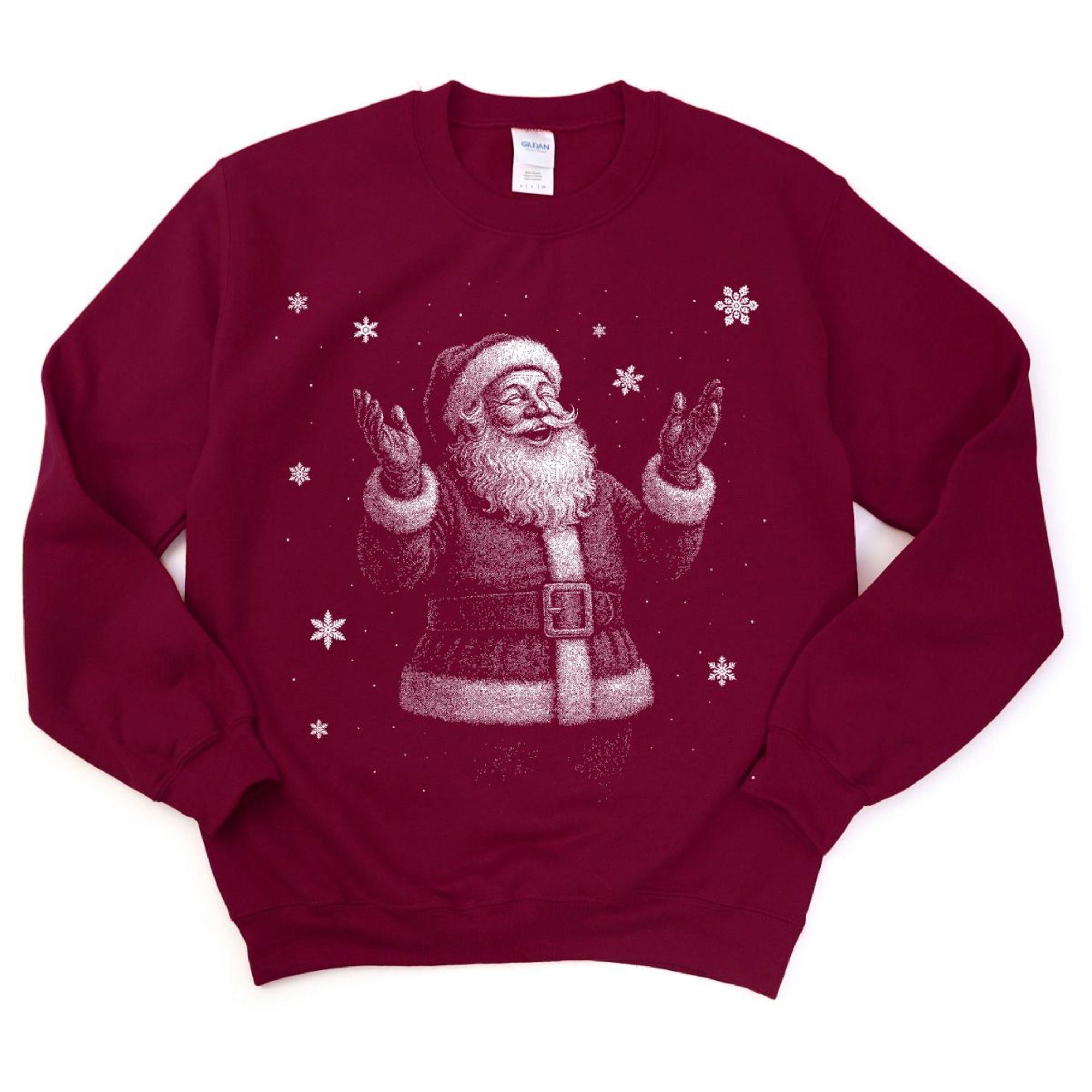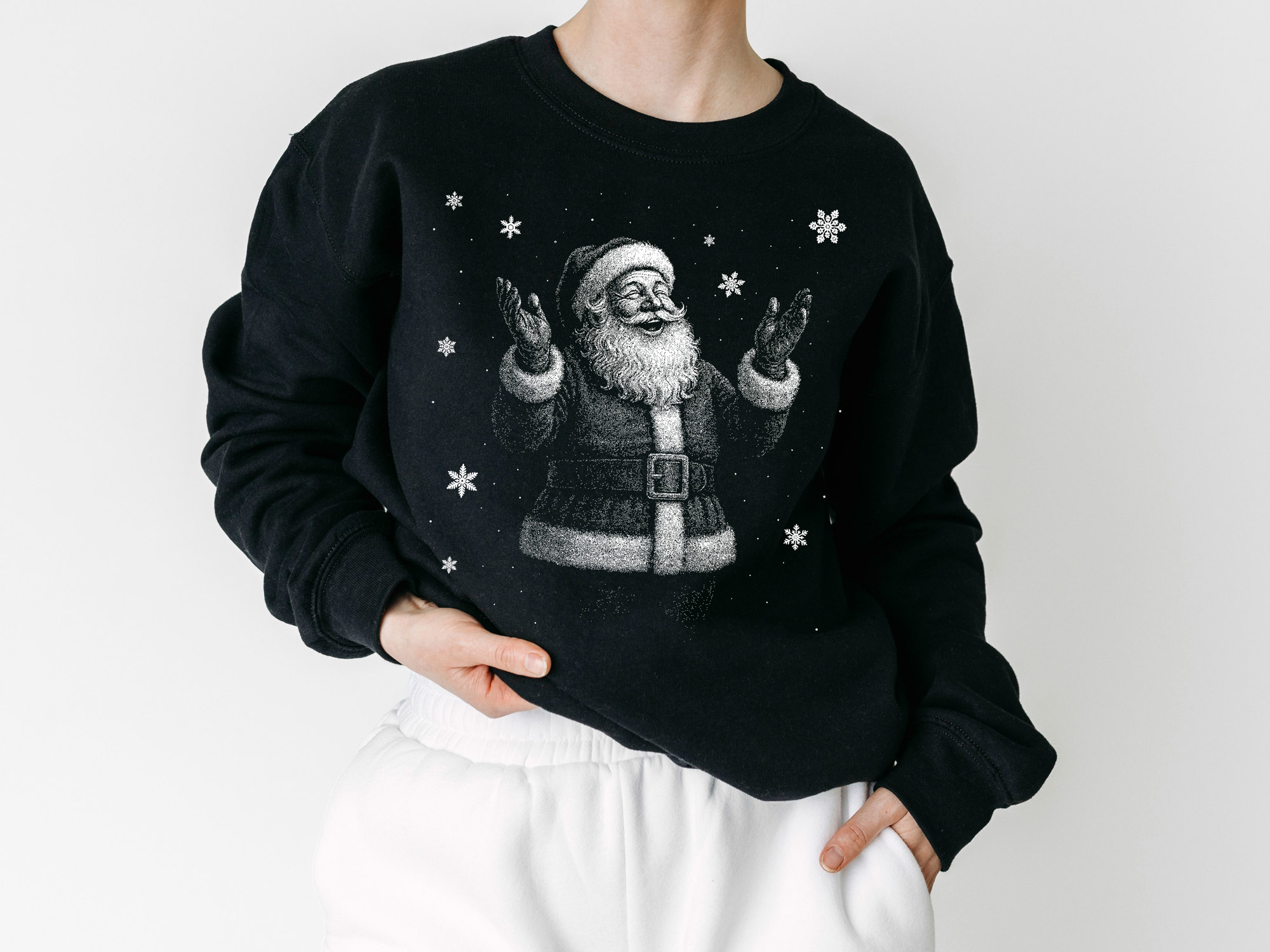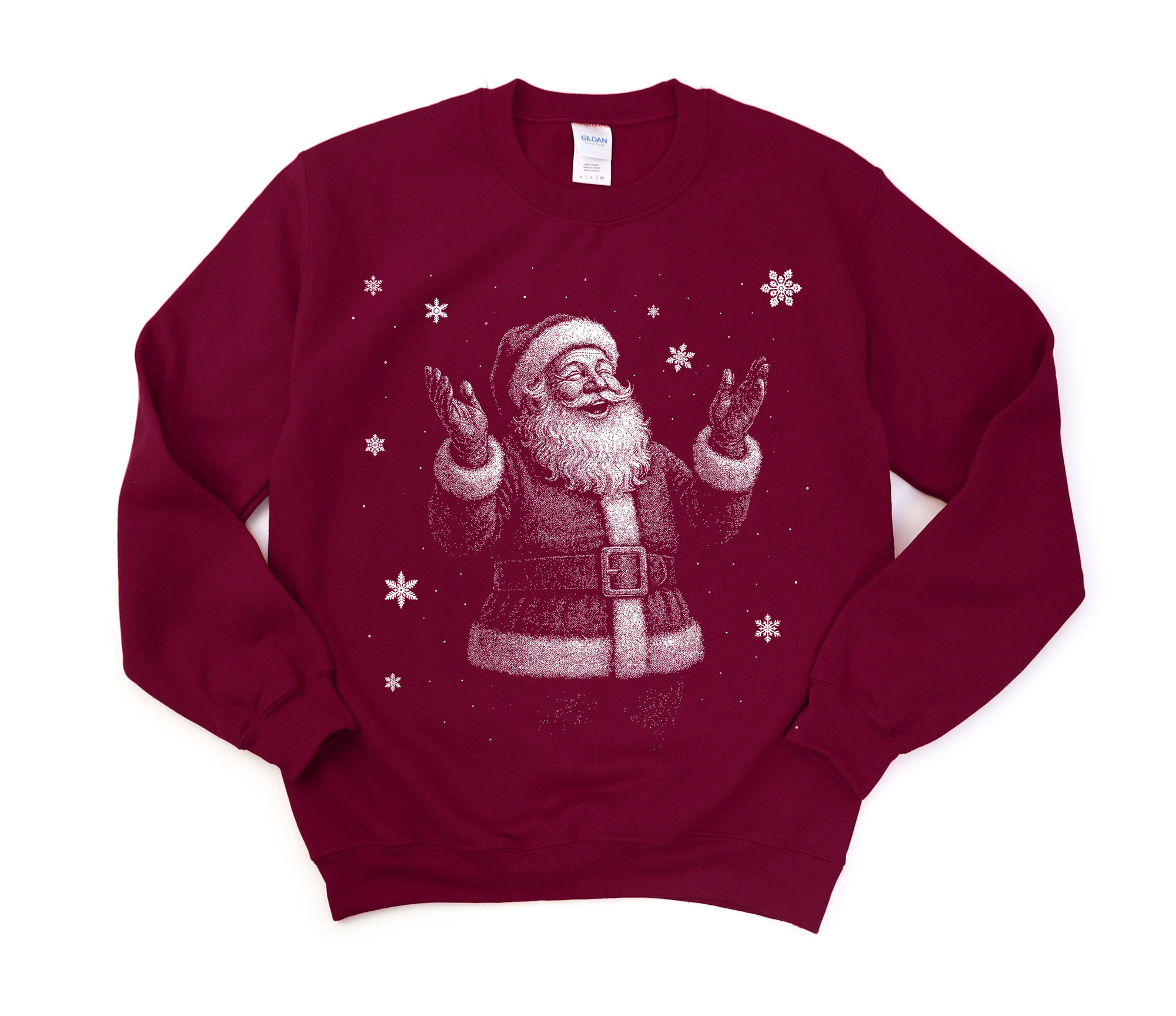 Jolly Christmas Santa in The Snow - Half Tone Style Print - Sweatshirt (Crewneck) Poly-Cotton Colors (Unisex) Gildan