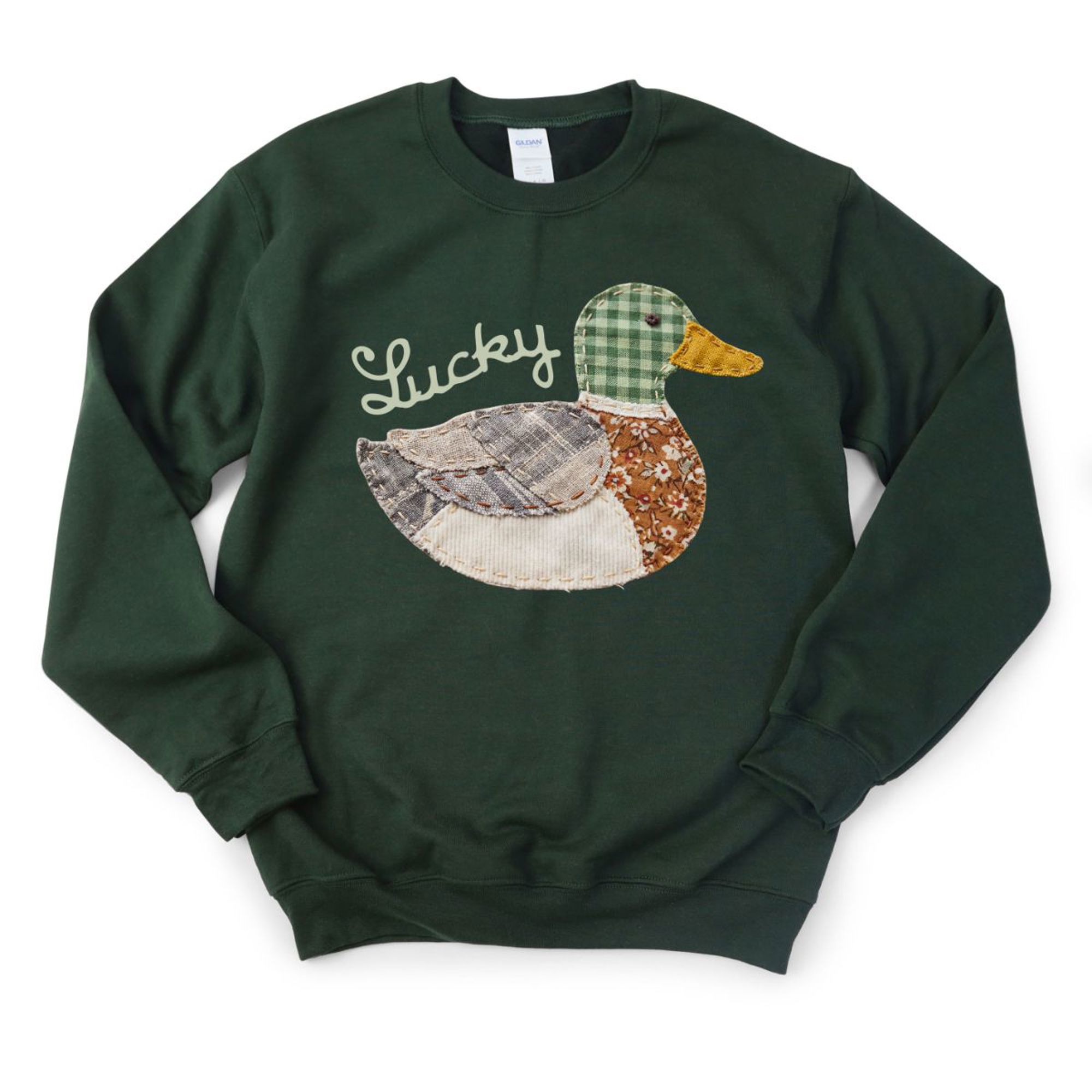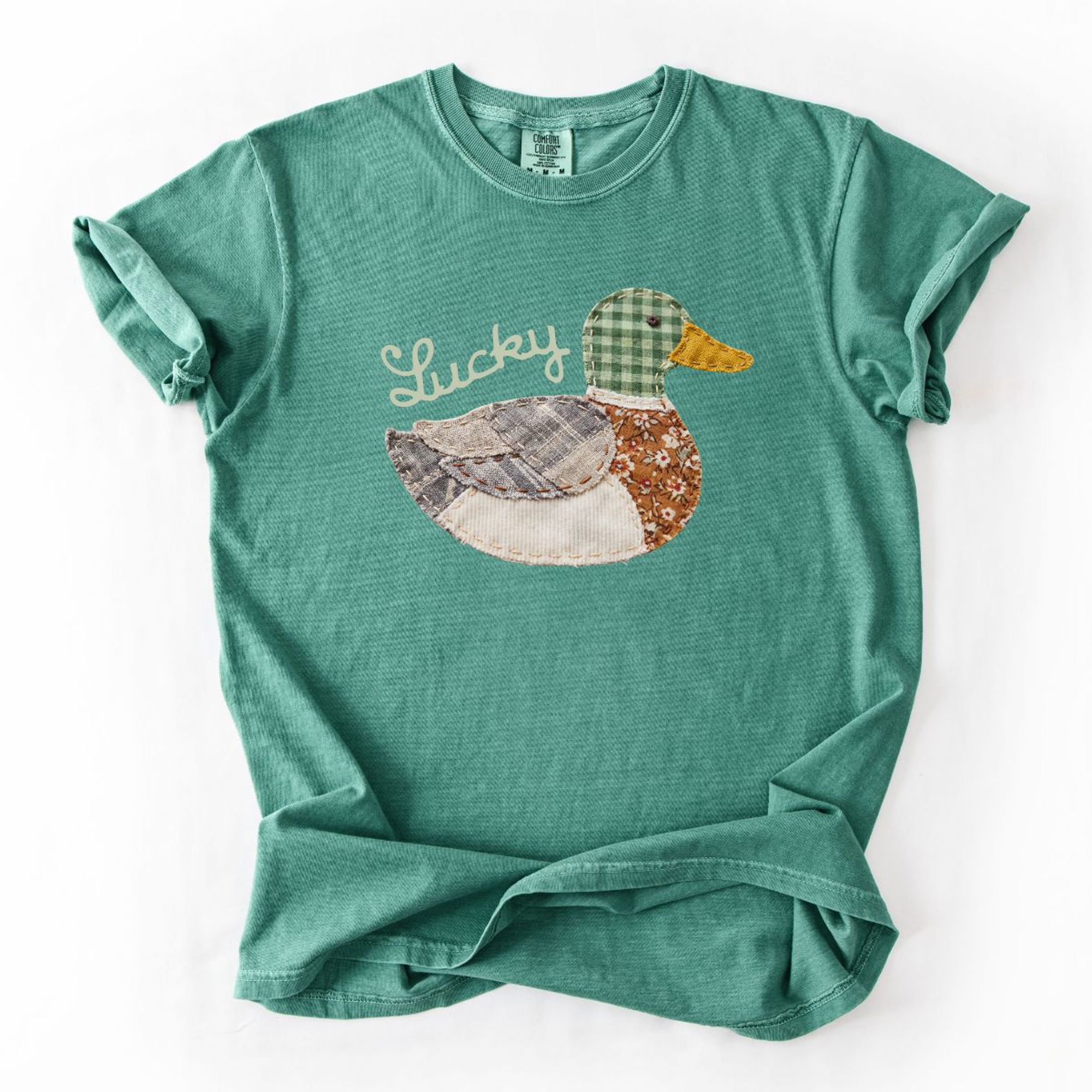 Lucky Ducky FAUX Printed Quilted Duck St Patricks Day - Choose Sweatshirts, T-Shirts or Longsleeves