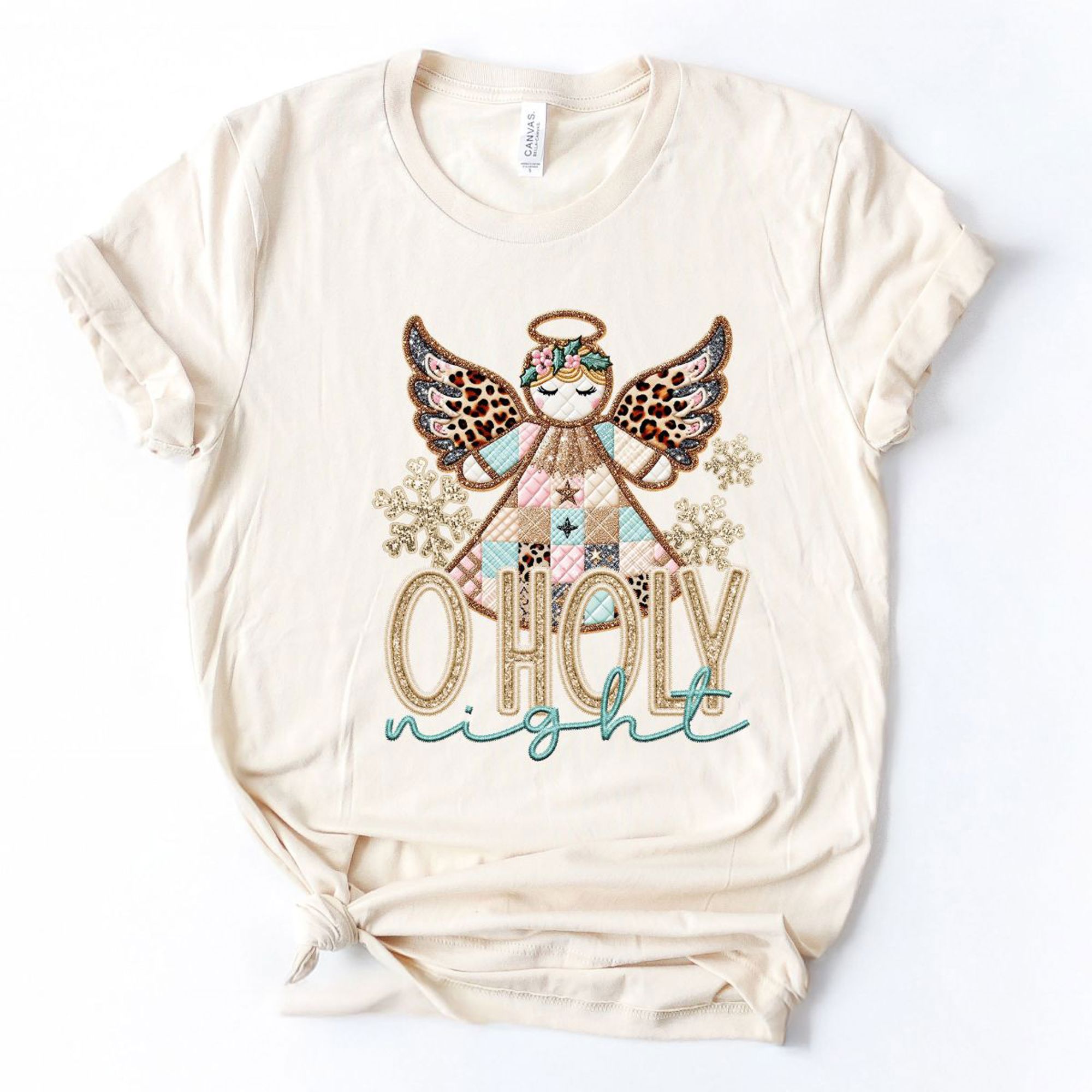 O Holy Night Christmas Quilted Angel With Animal Print - Soft Bella Canvas T-Shirt