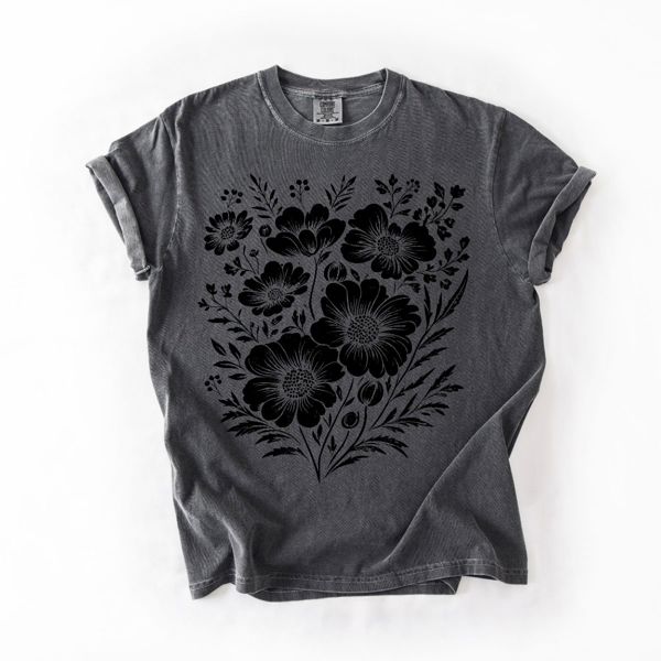 Greatly quality material and loved how the print came out on the shirt. Got it in gray and I like that the colors of the pumpkins add just a pop of Halloween without being too overwhelming.